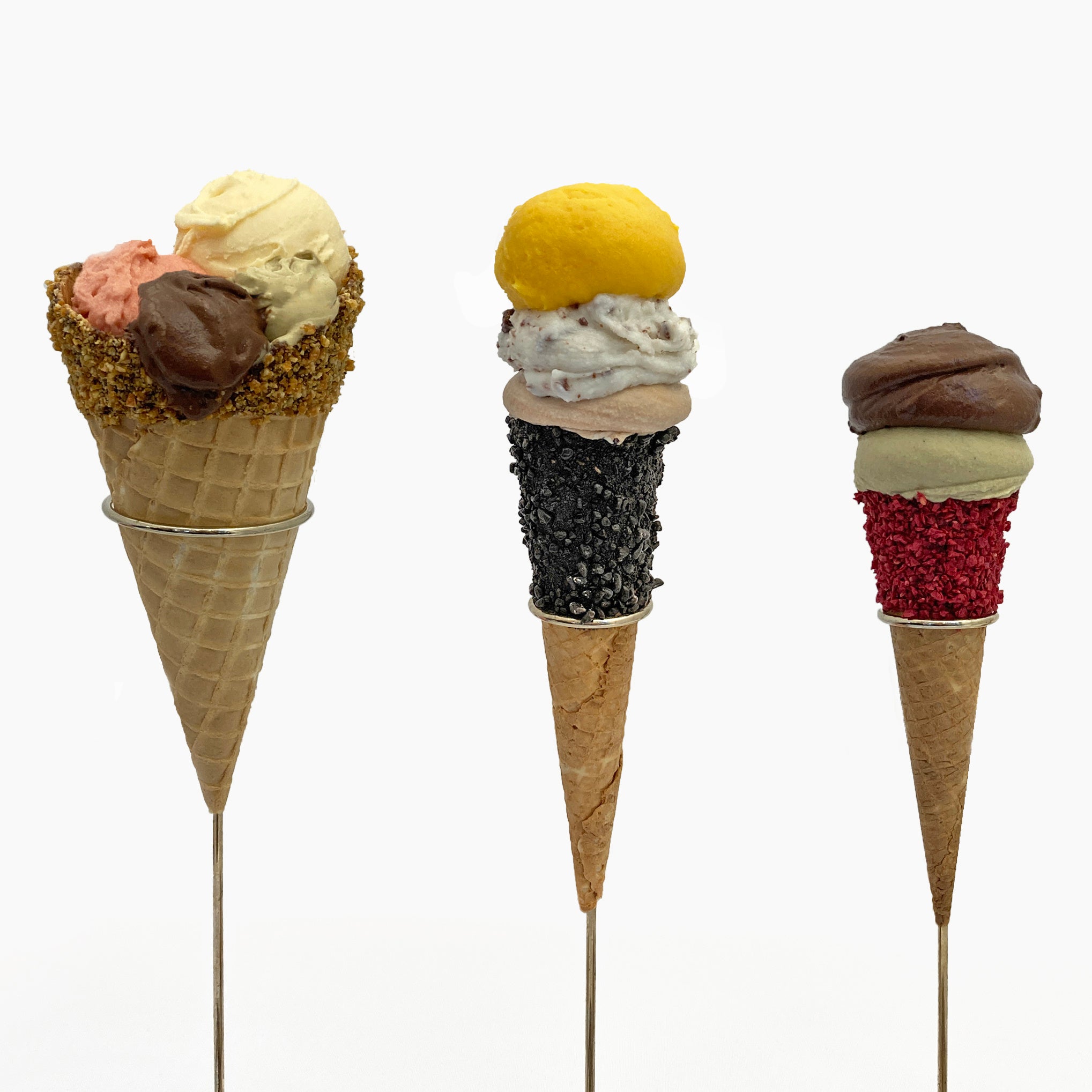 「ヘーゼルナッツ」と「ピスタチオ」はVenchiが誇る定番のナッツ系ジェラートですが、今回発売するのはミルクを使わずウォーターベースで作られるソルベで、ミルクベースのジェラートと比べるとより純度の高いナッツ感を味わえるのが特徴です。ナッツのペーストをそのまま食べているような濃厚さがあり、ソルベの概念を覆すくらいの驚きを感じていただけます。
