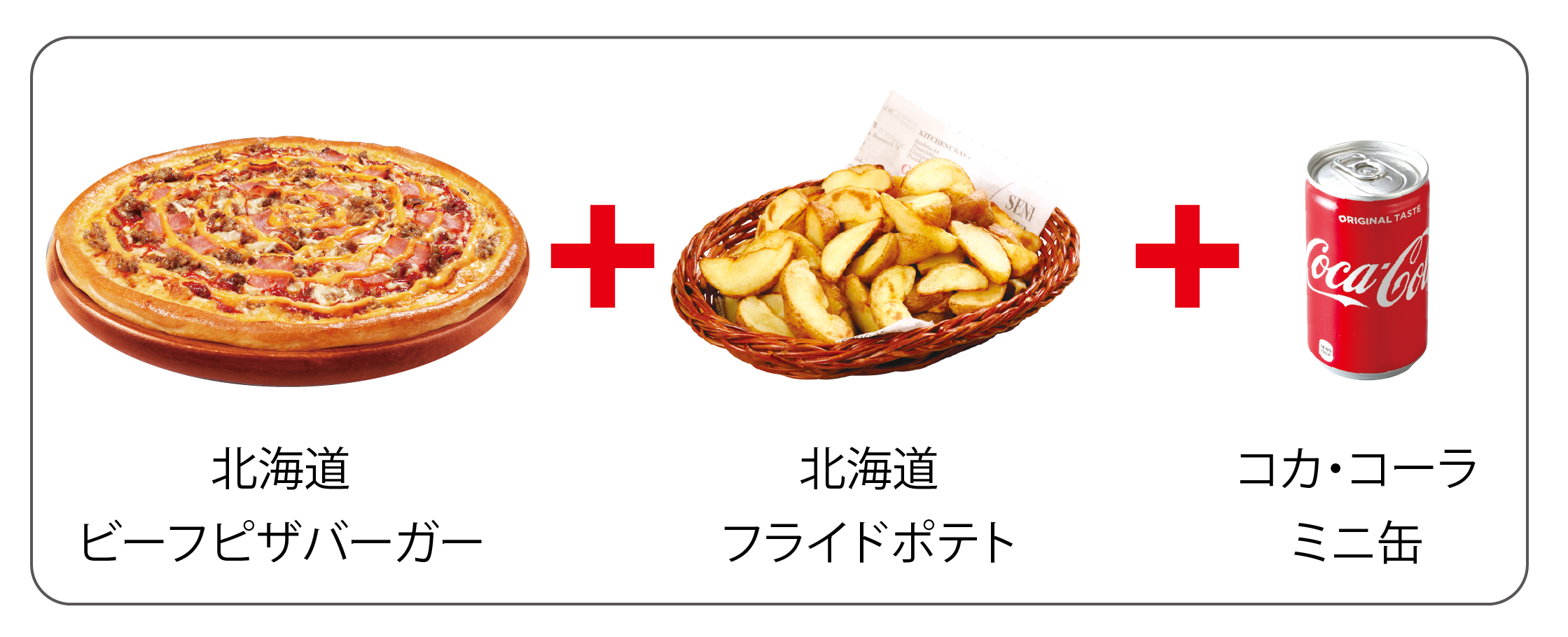 バーガーといえばやはり「ポテト&コーラ」のセットは鉄板!“北海道ビーフピザバーガー”に“北海道フライドポテト”と“コカ・コーラミニ缶”をセットでご提供いたします。M1,980円(税込2,138円)、L2,680円(税込2,894円)、モンスターサイズ3,980円(4,298円)のお値打ちセット。