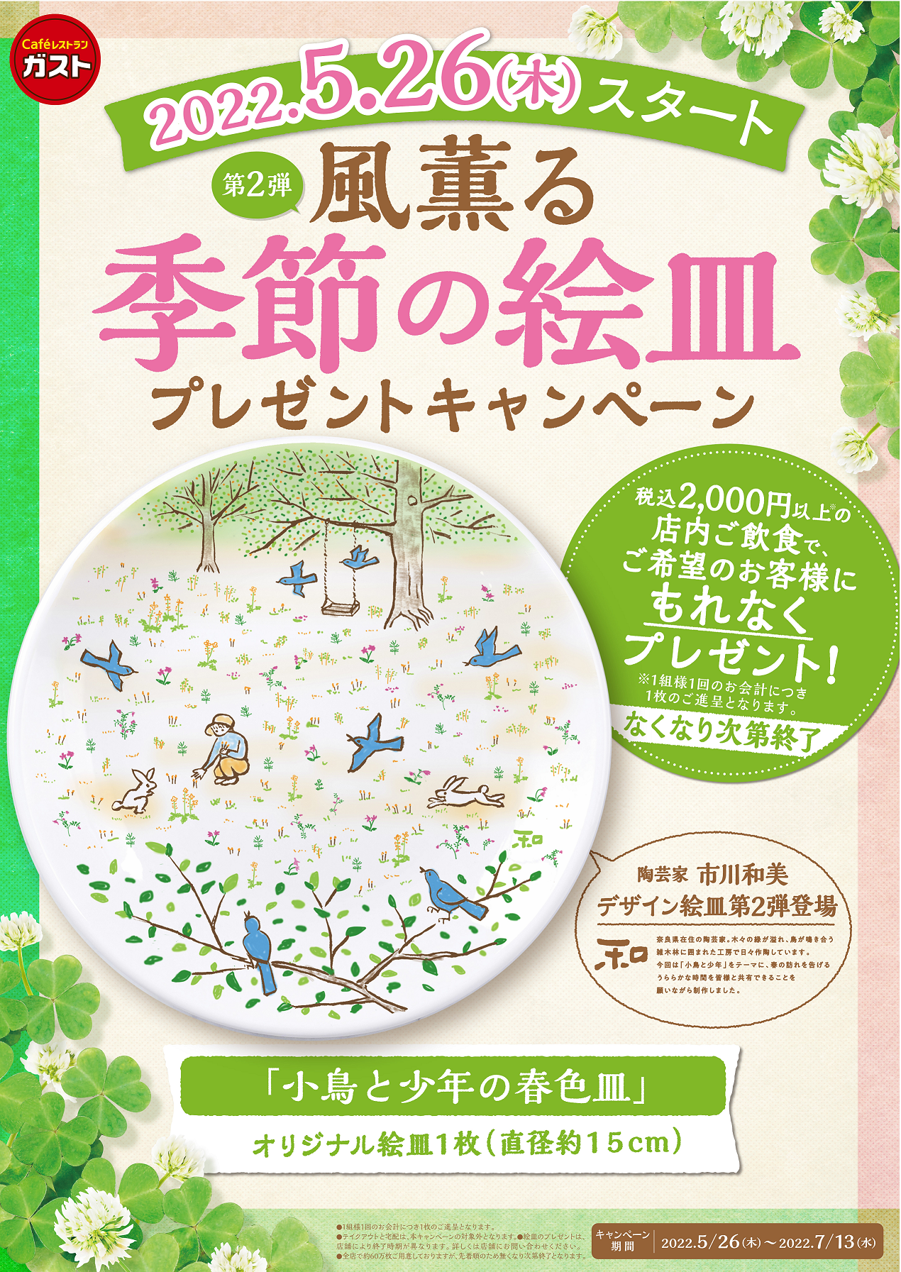 - 待望の第2弾!「風薫る季節の絵皿プレゼントキャンペーン」 がスタート!