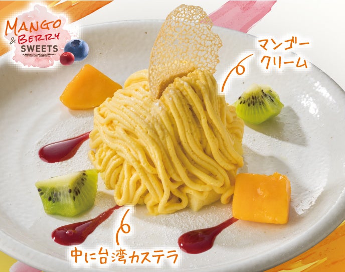 台湾カステラに、甘酸っぱいパッションマンゴークリームをたっぷりのせた特製モンブランです。