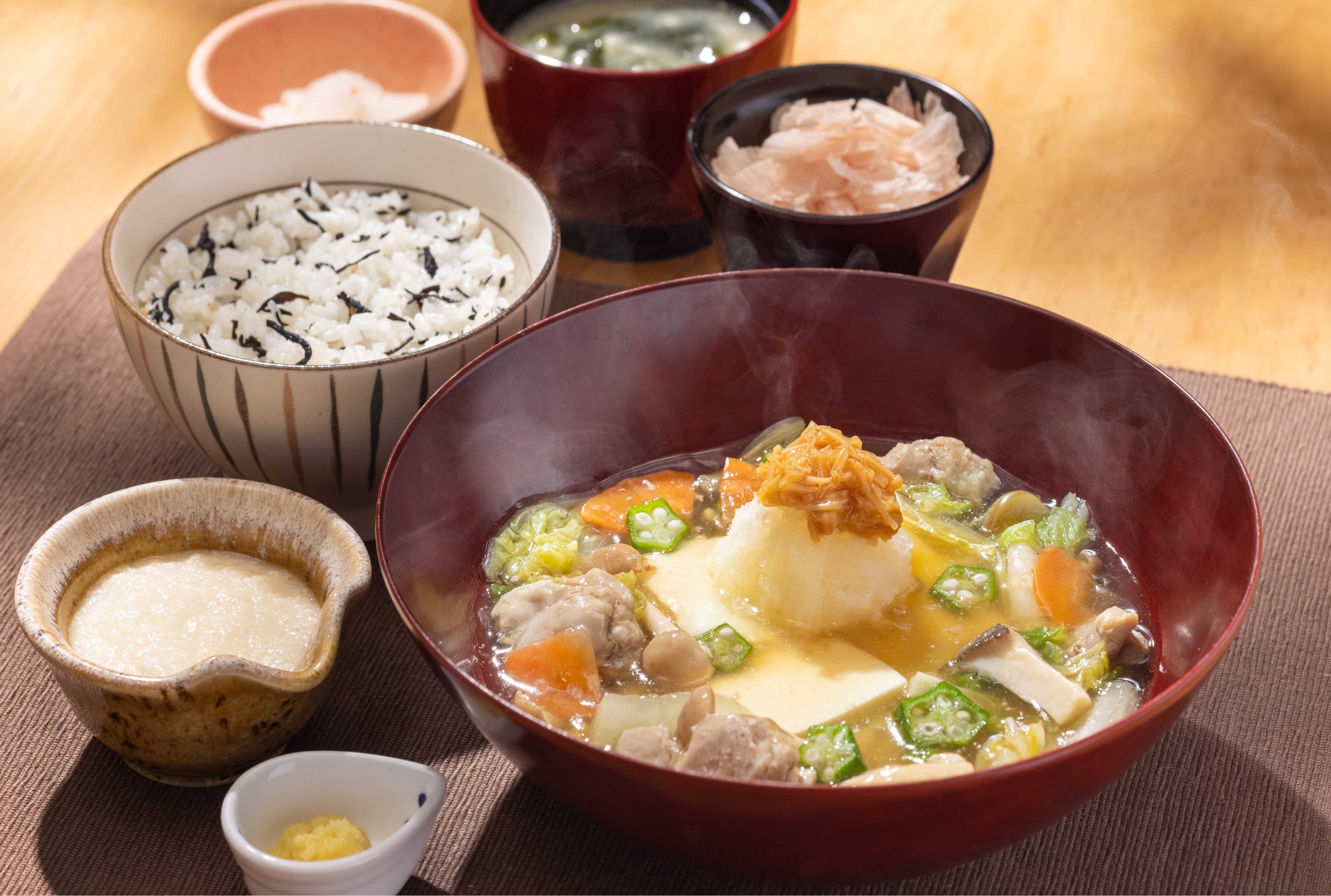 - 鶏肉とお豆腐ねばねば野菜のトロトロ煮とひじきご飯 【NEW】