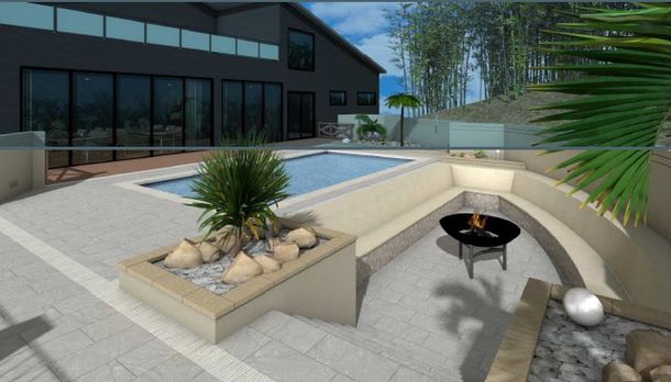 (3)1階にプールサイドデッキ・2階にはスカイテラス(竹林が一望)