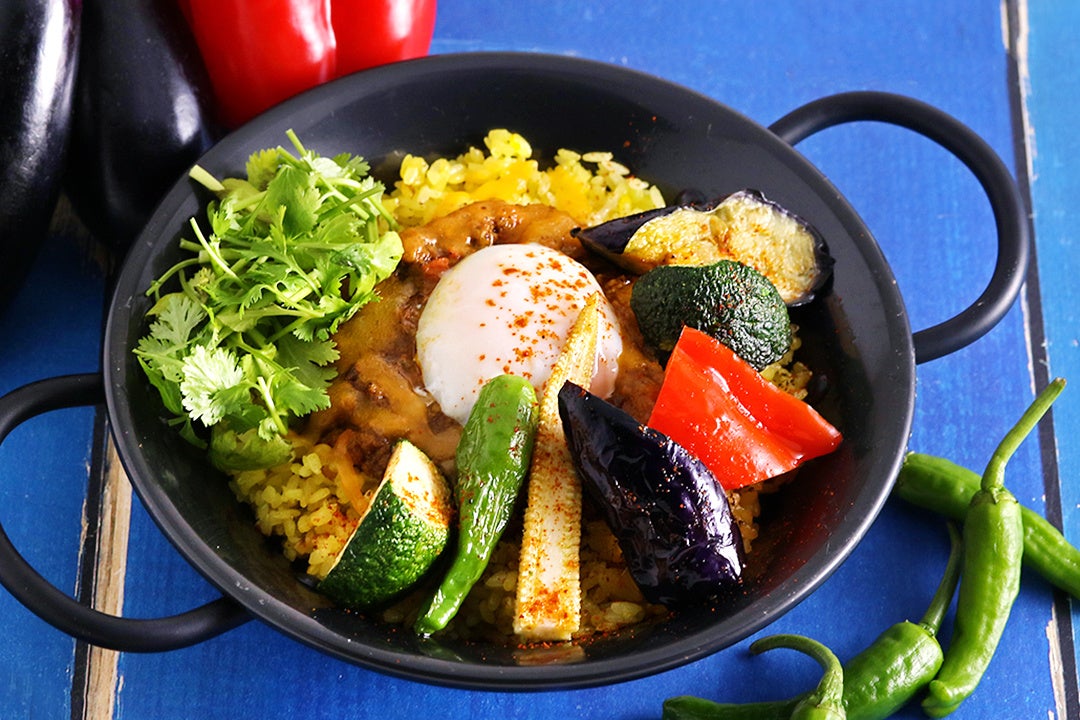 ピリッとスパイシーなキーマカレーに彩り野菜をトッピング。