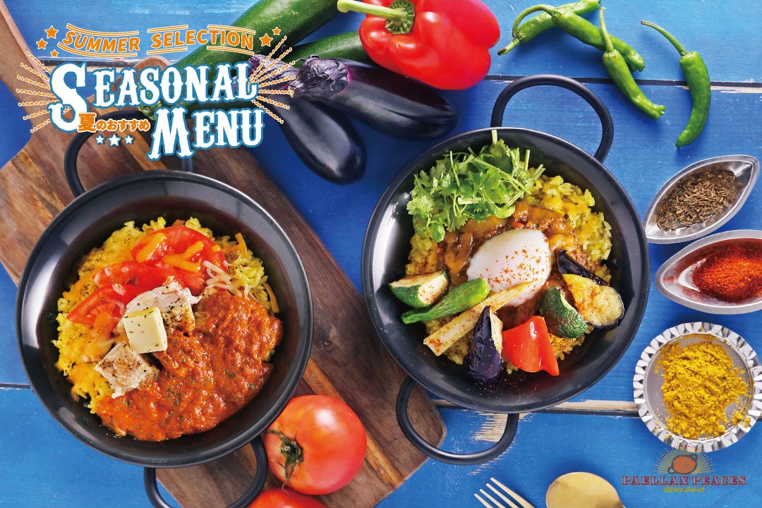 パエリアン・ピーシーズでは、2022年6月1日(水)から、期間限定で「バターチキンカレーパエリア」と「夏野菜のキーマカレーパエリア」の2種が登場します。
