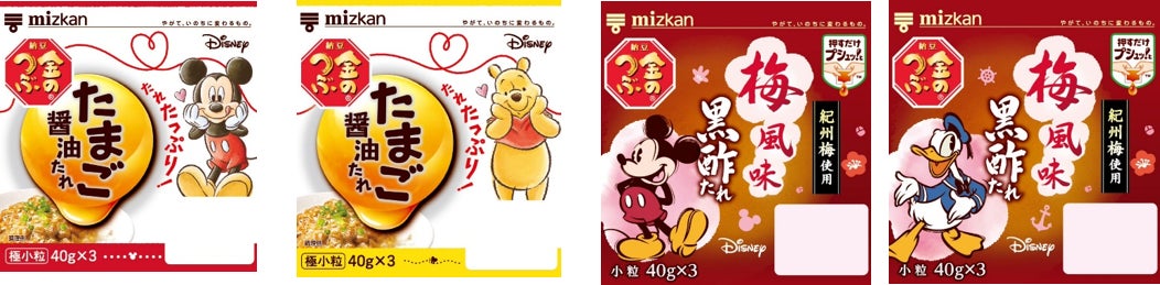 今回発売するディズニーパッケージは、「金のつぶ たれたっぷり!たまご醤油たれ 3P」が全9種類、「金のつぶ 押すだけプシュッ!と 梅風味黒酢たれ」が全8種類の発売となります。