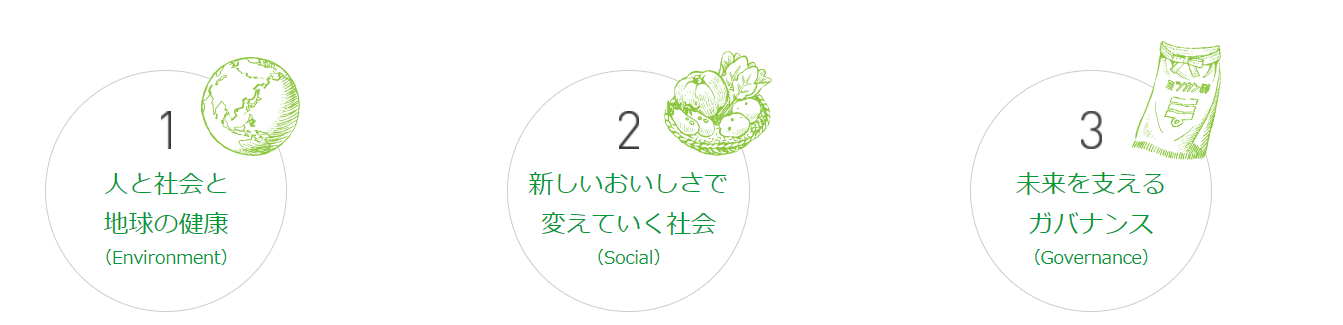 地球環境に貢献し、グローバル化をはかり、新しい食の未来をめざし、おいしさと健康を一致させた商品を世界に提供していきたいと考えています。100年先も「やがて、いのちに変わるもの。」を育む変革と挑戦の企業であり続けたいと考えています。
