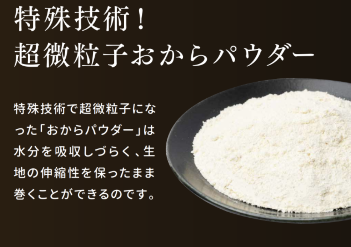 粘り強く取り組んだ結果、ついに当初この商品の開発の話を持ちかけて回った99%以上の工場で言われた「絶対におからで巻けるわけがない」という定説を覆すこととなった。