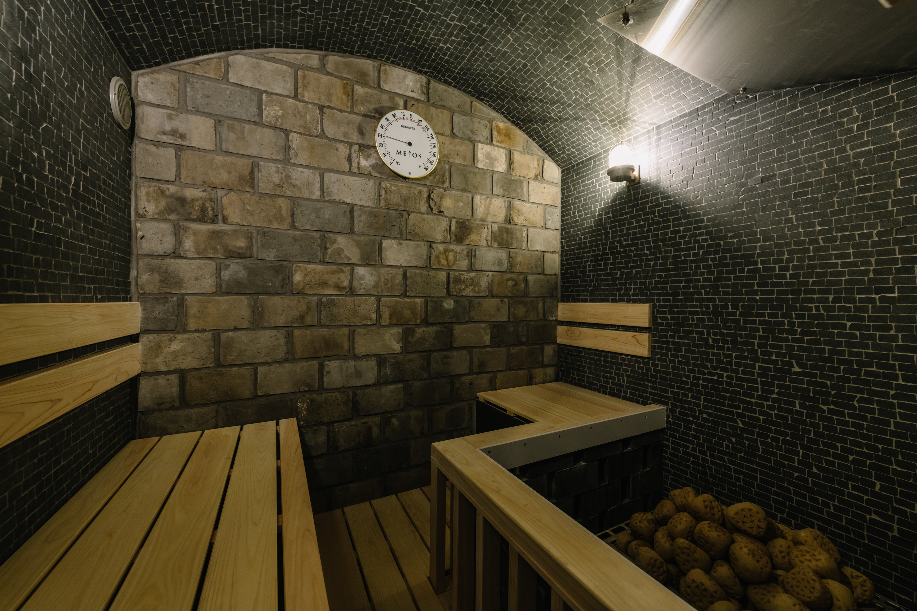 ぎょうざ店の奥にある貸し切り温浴施設 風呂上がりにビールと餃子で締めれます