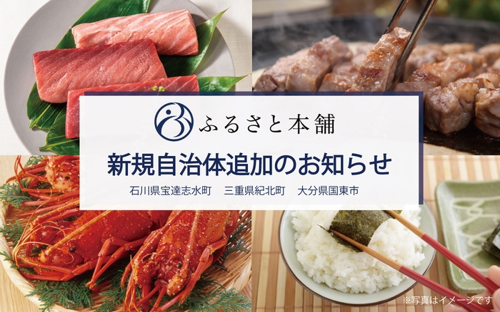 株式会社CARTA HOLDINGSのグループ会社である株式会社ふるさと本舗(東京都渋谷区、代表取締役CEO:八尋 洸太郎)は、運営する特産品ポータルサイト「ふるさと本舗」( https://furusatohonpo.jp/ )において、新たに石川県宝達志水町、三重県紀北町、大分県国東市の3自治体情報を追加しました。