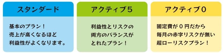 現在3つのプランをご用意しており、収益性を重視するか、開業時のリスク回避をとるか等、重要視している所によってご希望のプランを選択可能となっております。