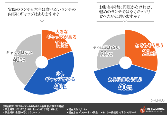 そこで今回、すた丼をはじめとした“明日への活力”となる商品を提供する、株式会社アントワークス(https://antoworks.com/)は、全国30代のサラリーマンを対象に、「サラリーマンのお財布と外食事情」に関する調査を実施しました。