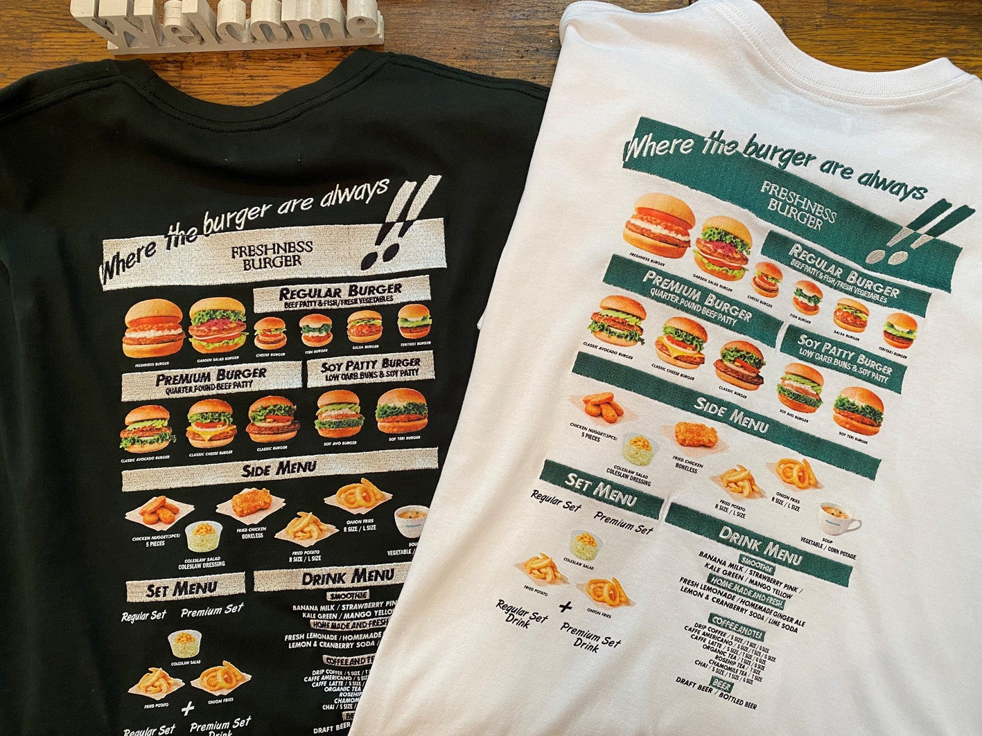 ハンバーガーやメニューをモチーフに、「FREAK’S STORE」によってデザインディレクションされたTシャツをご用意いたしました。