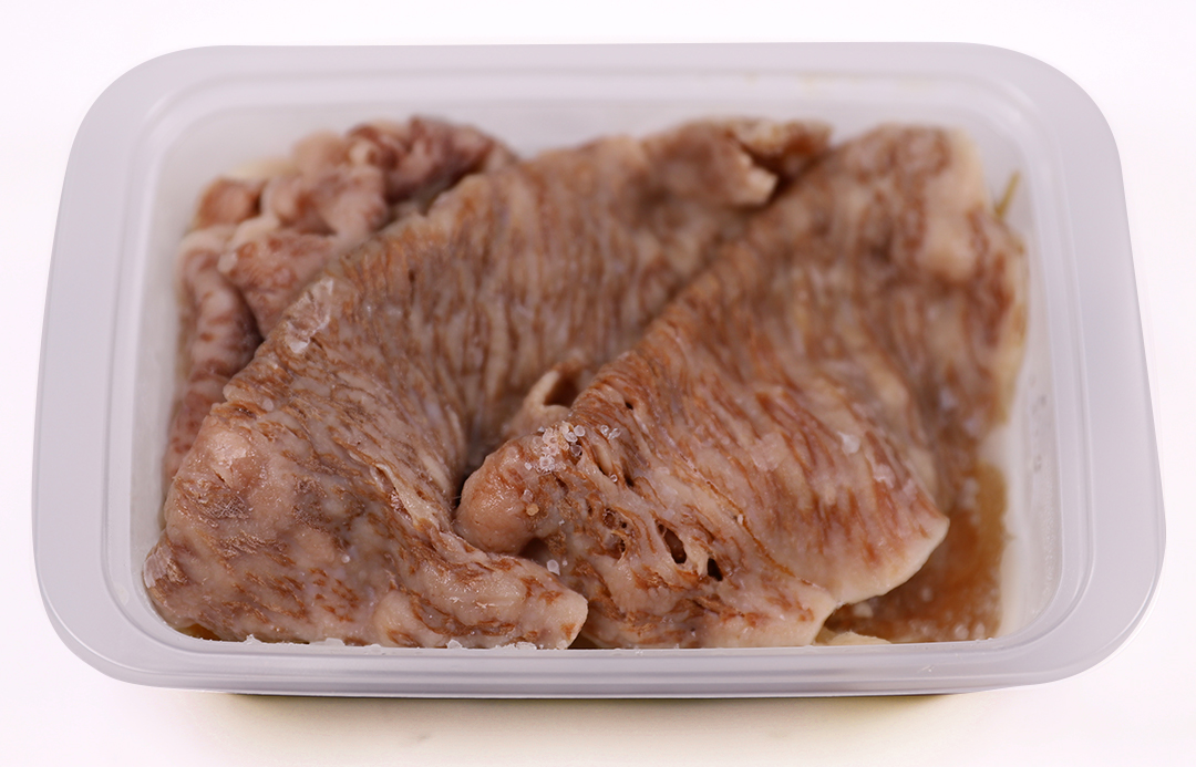 「秒で旨い、おうち焼肉セット」は、「お店で食べるおいしい焼肉をおうちでも、好きな時にいつでも召し上がっていただきたい」という想いから生まれました。極上A5ランク黒毛和牛を一頭買いし、熟練の職人がカッティング・焼き上げています。特殊冷凍技術により焼きたての味をそのまま再現し、数秒レンジでチンするだけで都内焼肉店の味をおうちで楽しめる商品です。特許取得*のAI味覚センサーで肉との相性が実証された薬味も付いており、進化系“焼かない焼肉”としてお楽しみいただけます。
