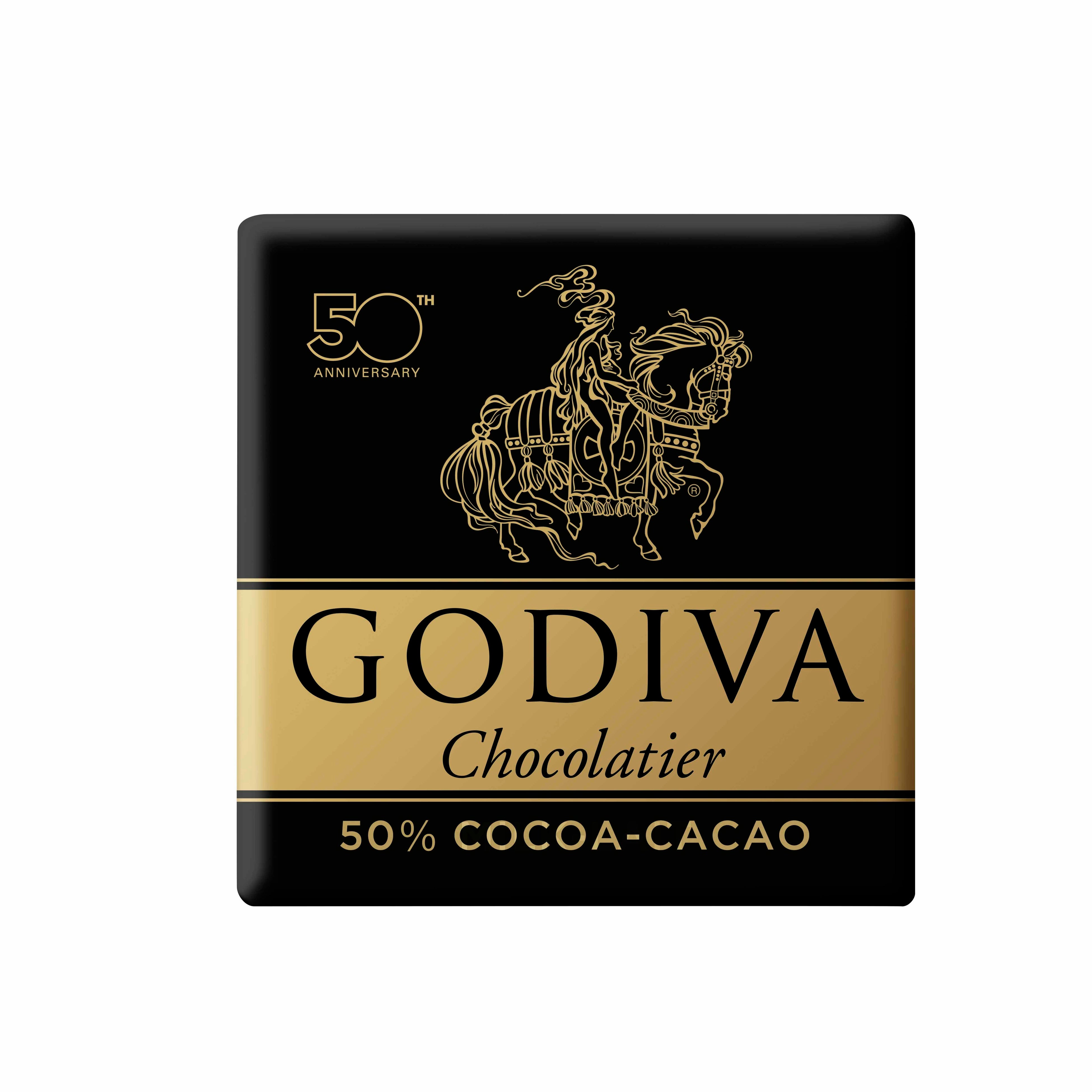 日本上陸50周年記念し、ヴィンテージロゴを使ってデザインしました。カカオ分50%のほろ苦さと香りをバランスよく楽しめるダークチョコレート。