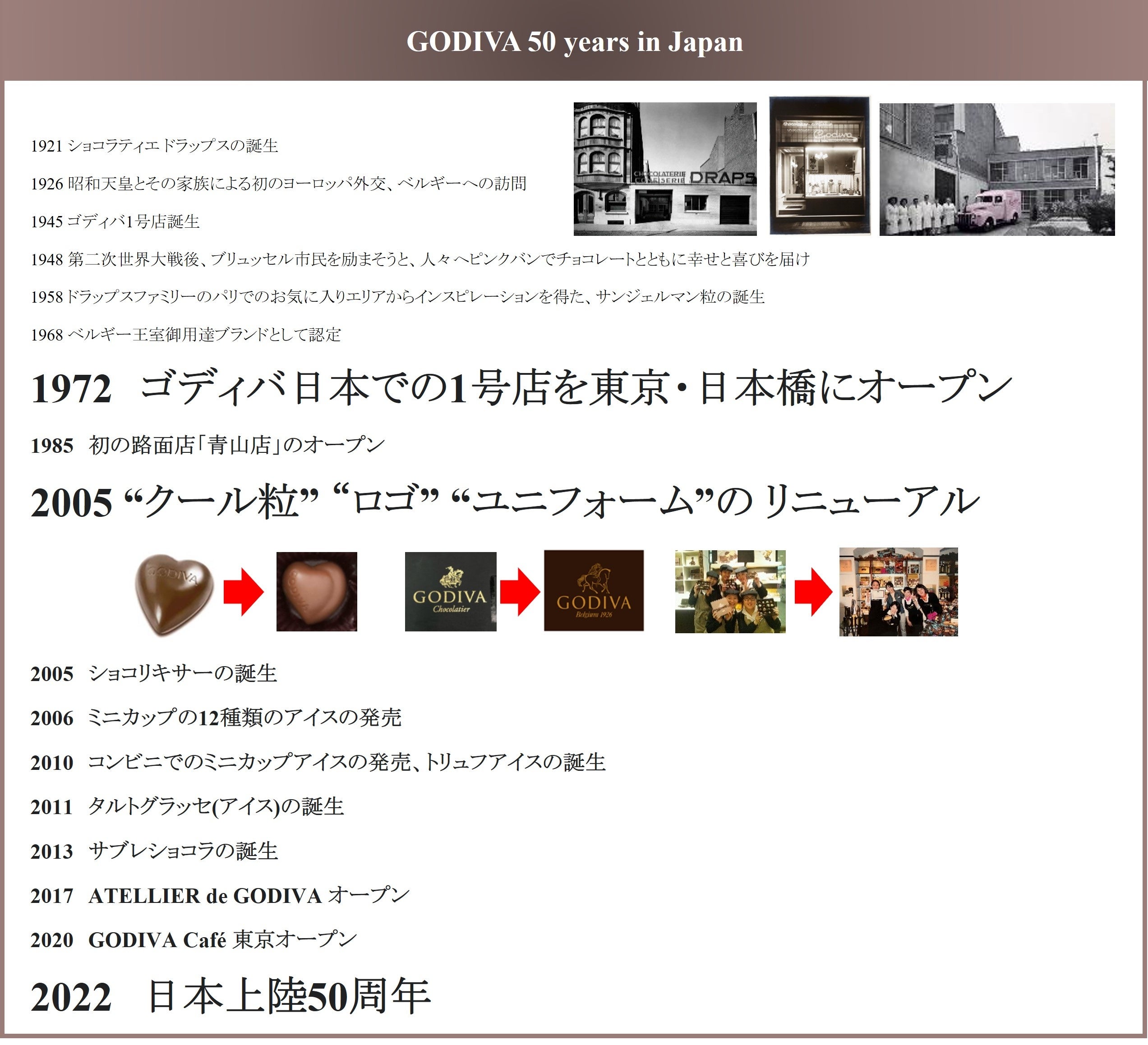2022年、“GODIVAはもっと日本を知りたい。”をテーマに年間を通して特別なチョコレート開発やキャンペーン、イベントなど50周年を祝う様々な取り組みを実施してまいります。