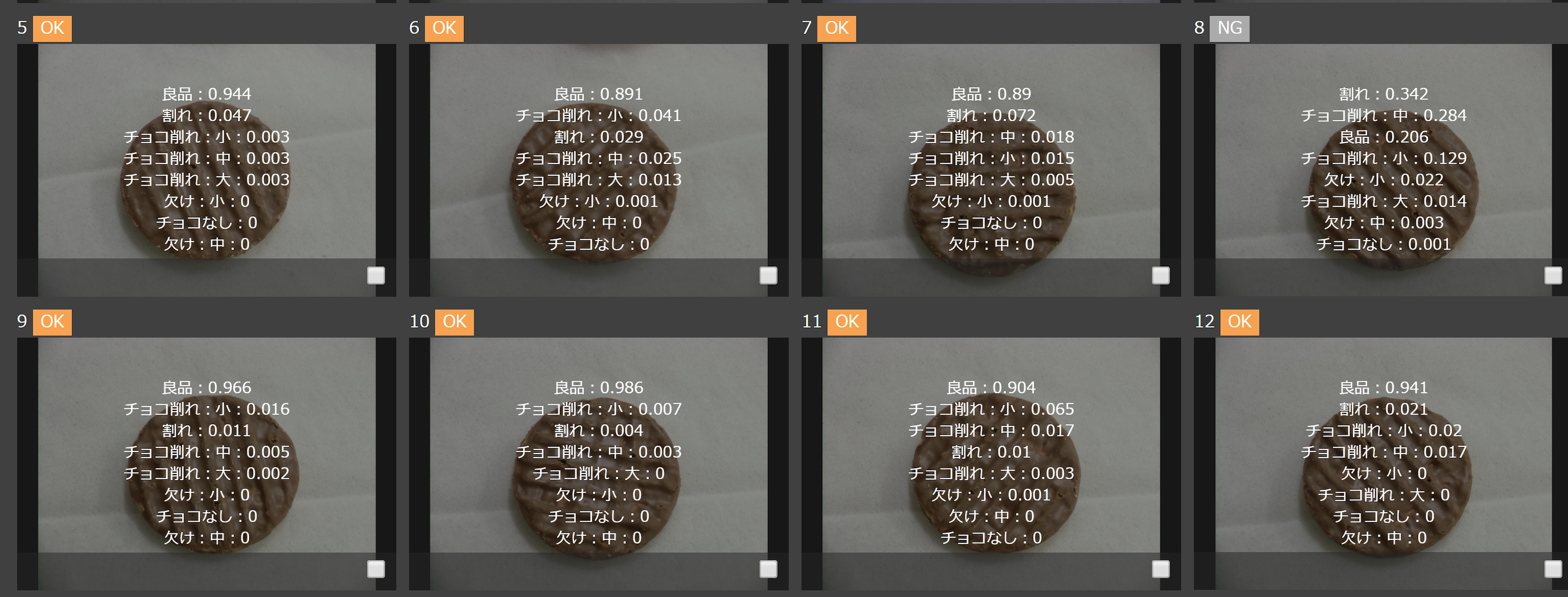 不良品判定の様子をリアルタイムでご覧いただけます。