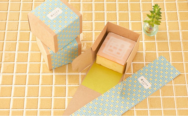 甜カステラでは、おなじみのマジョリカタイル柄のパッケージも檸檬カステラ仕様になって登場。