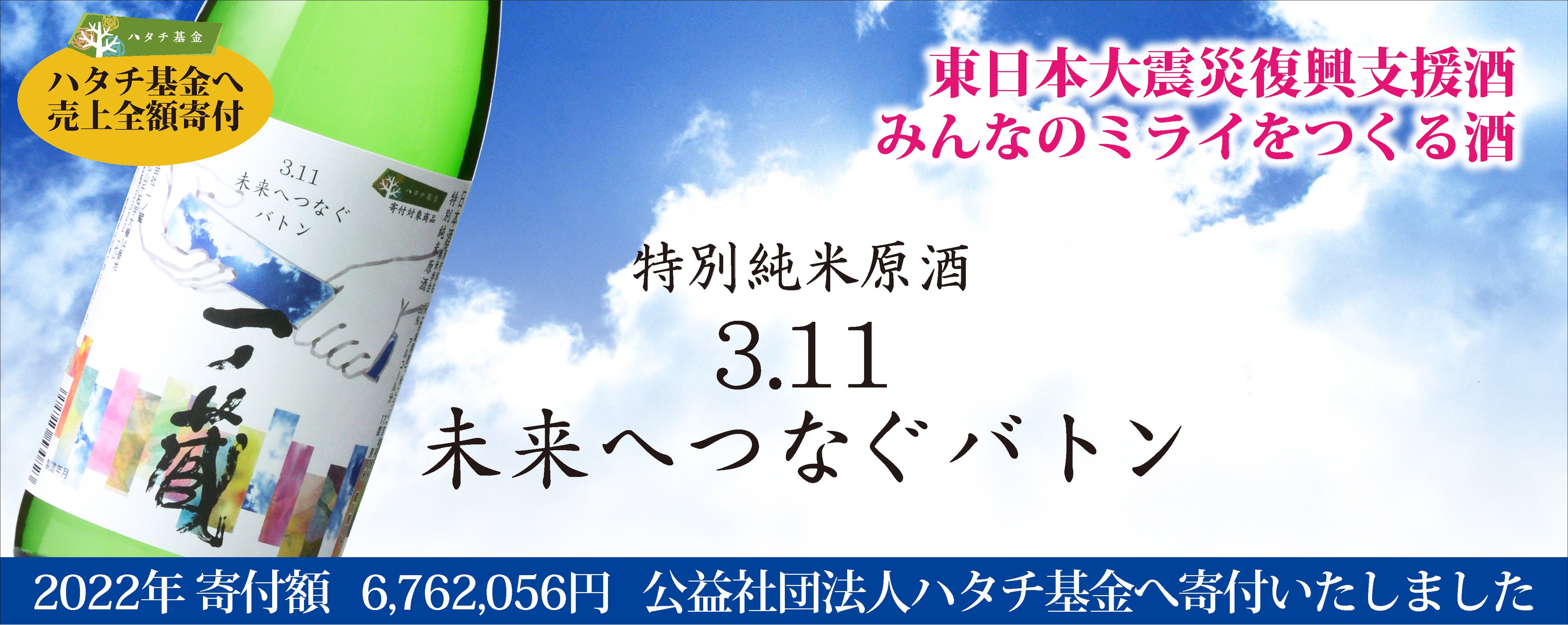その活動の柱を担うのが、一ノ蔵特別純米原酒3.11未来へつなぐバトンの発売とその弊社売上金全額を公益社団法人ハタチ基金へ寄付する活動です。