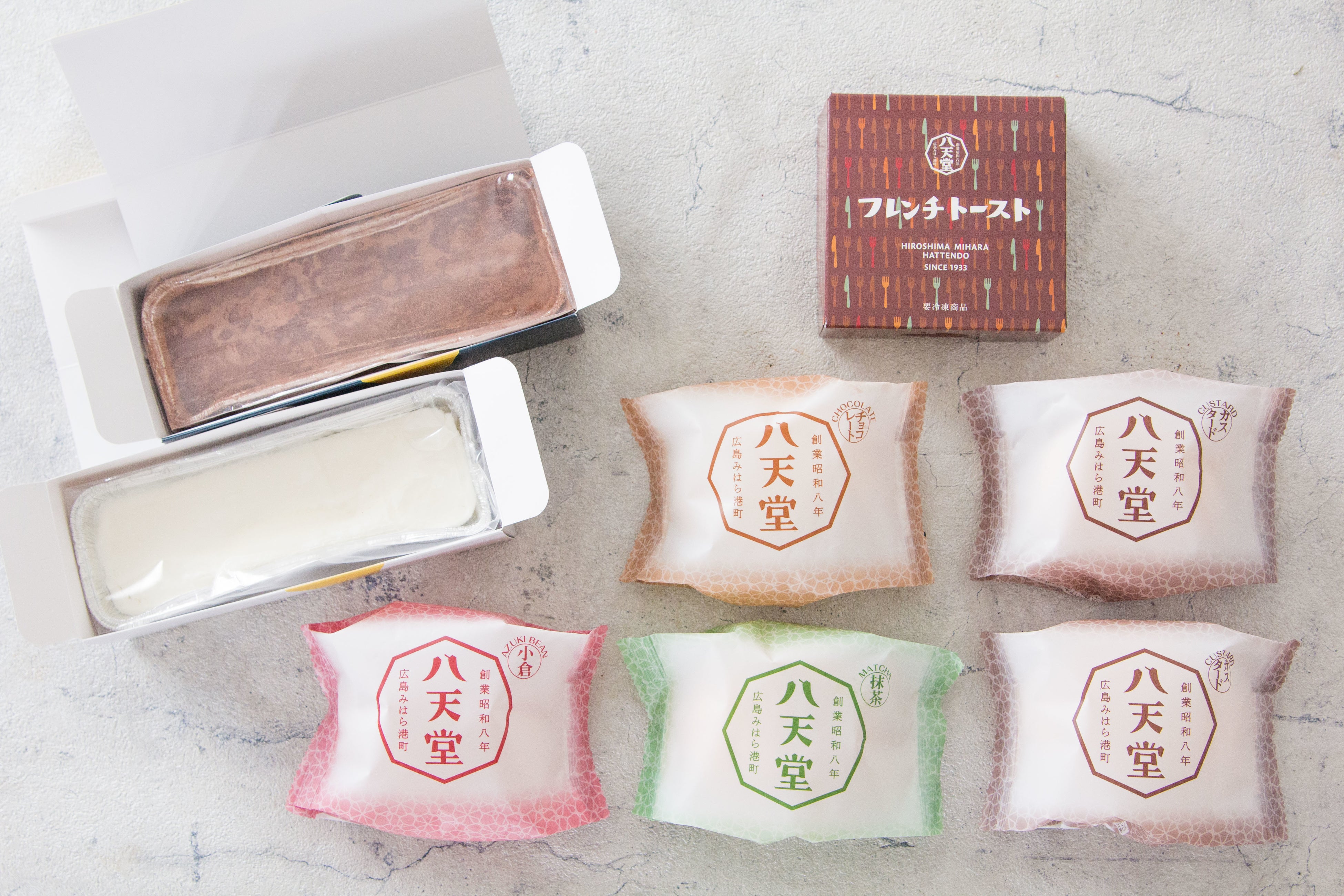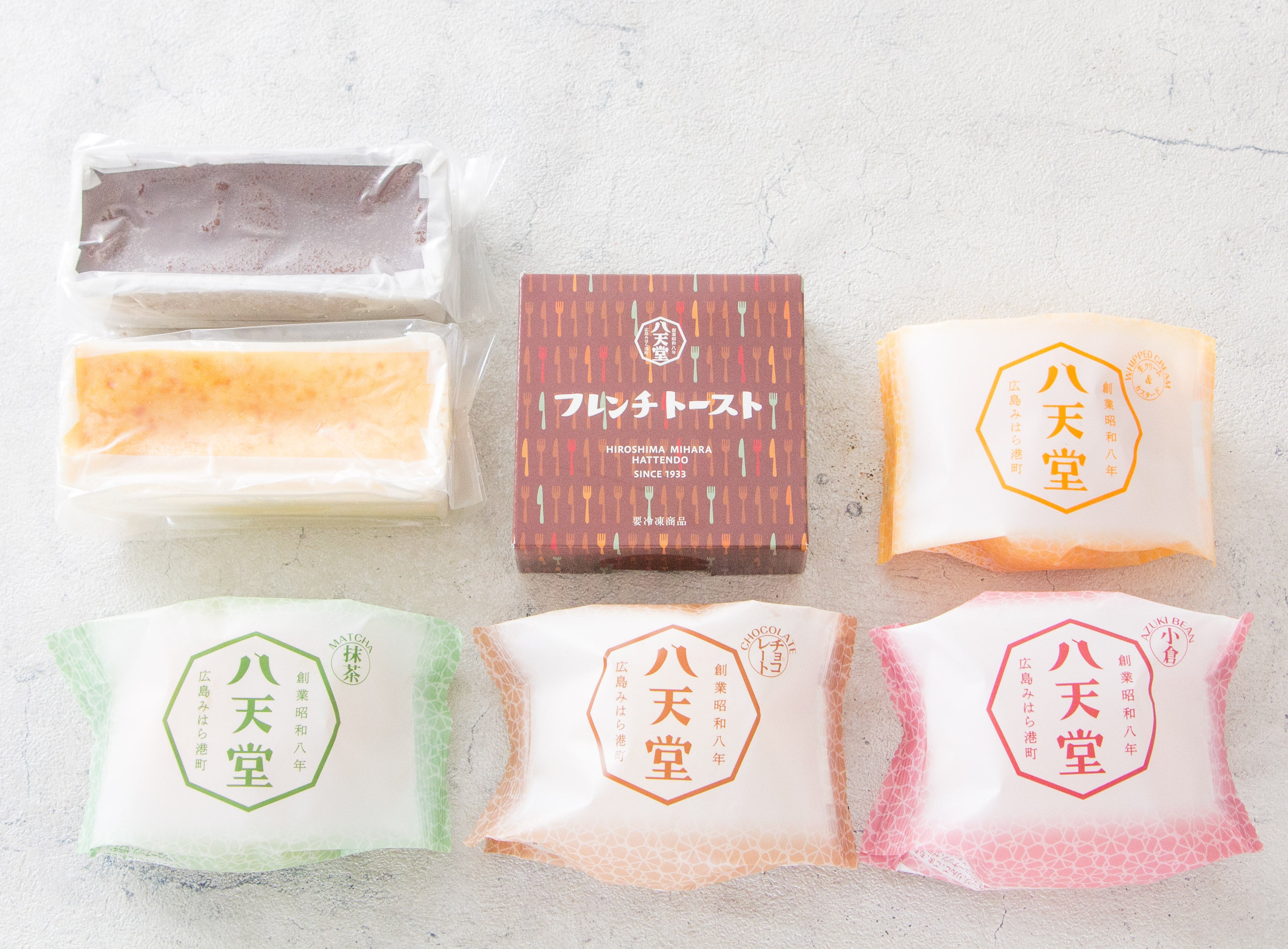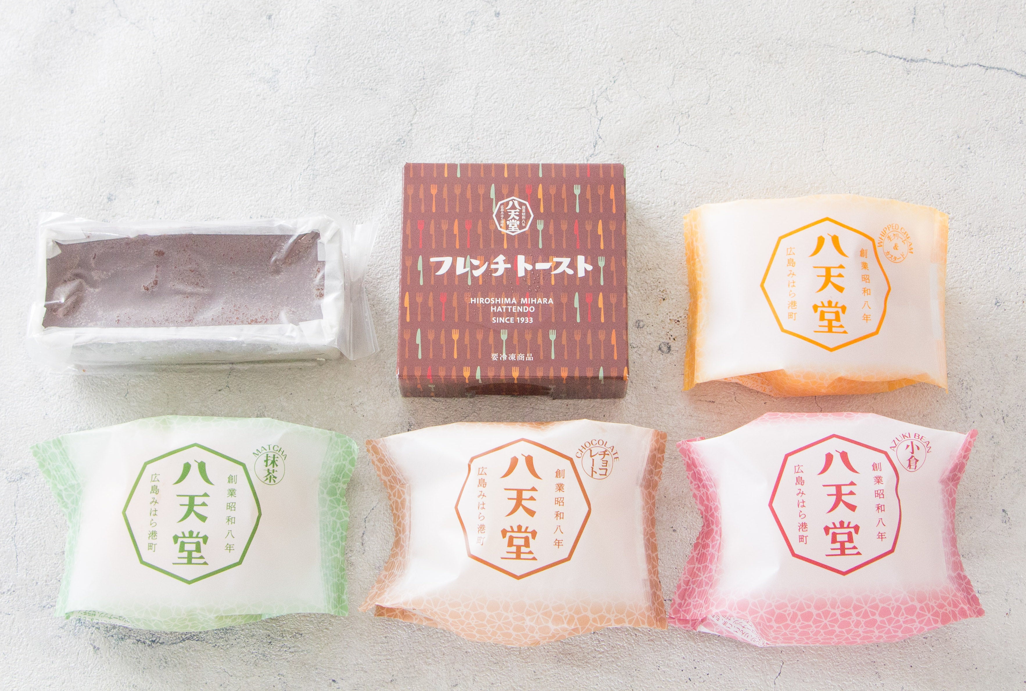 八天堂「フレンチトースト」、「くりーむパン」生クリーム&カスタード、「くりーむパン」抹茶、「くりーむパン」チョコレート、「くりーむパン」小倉