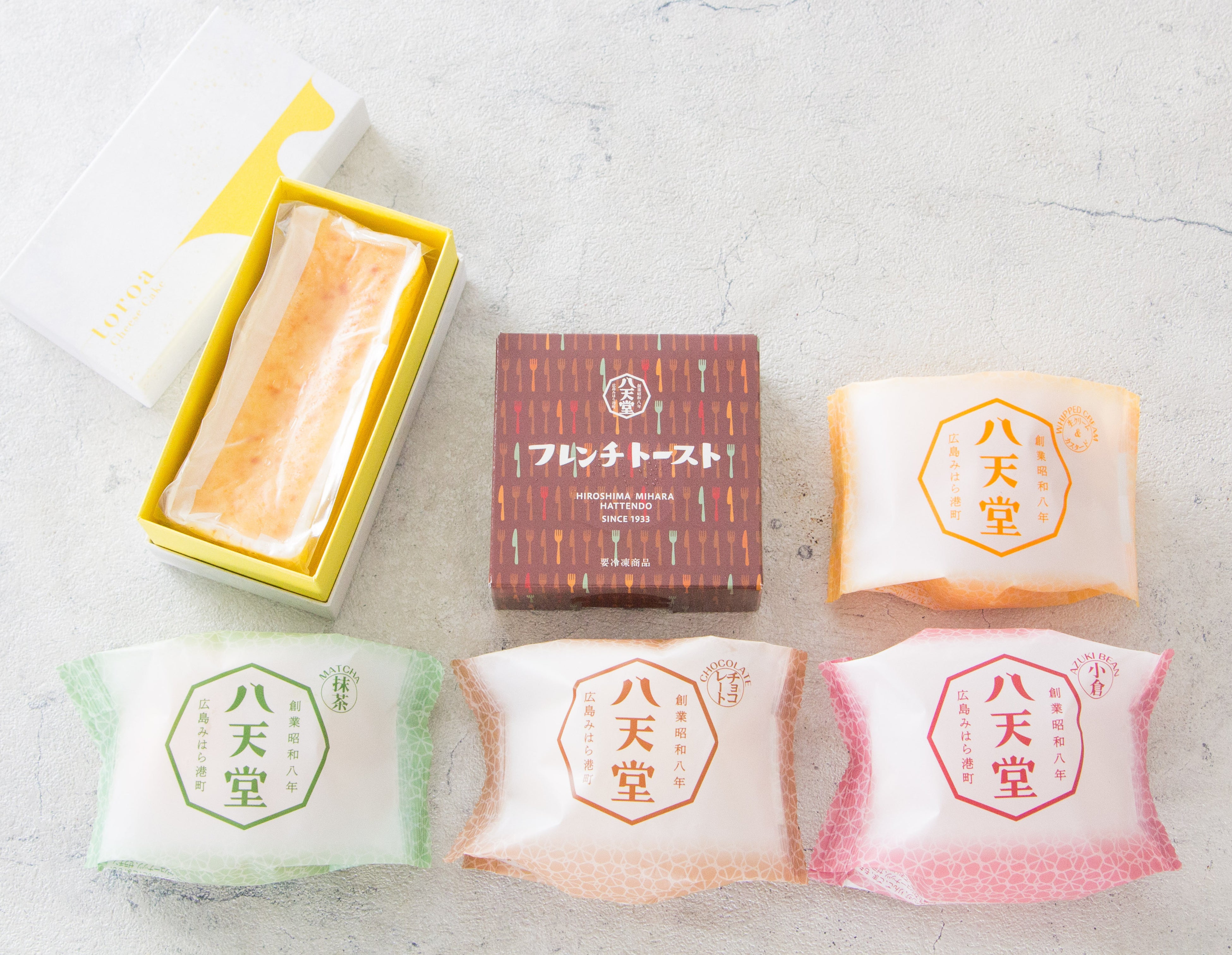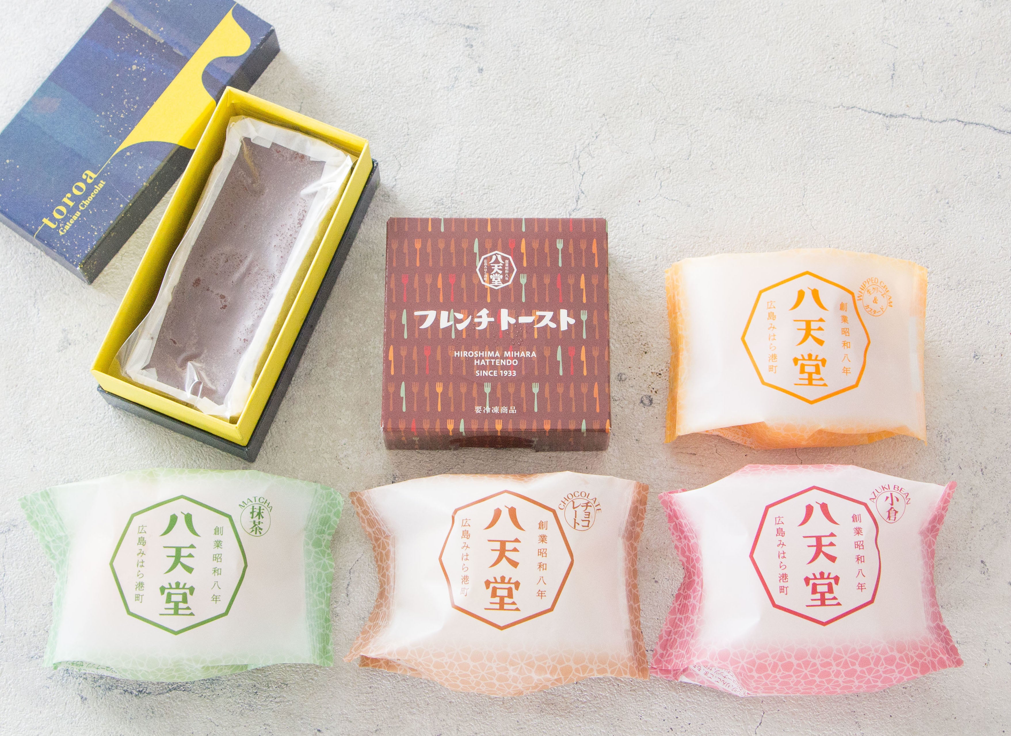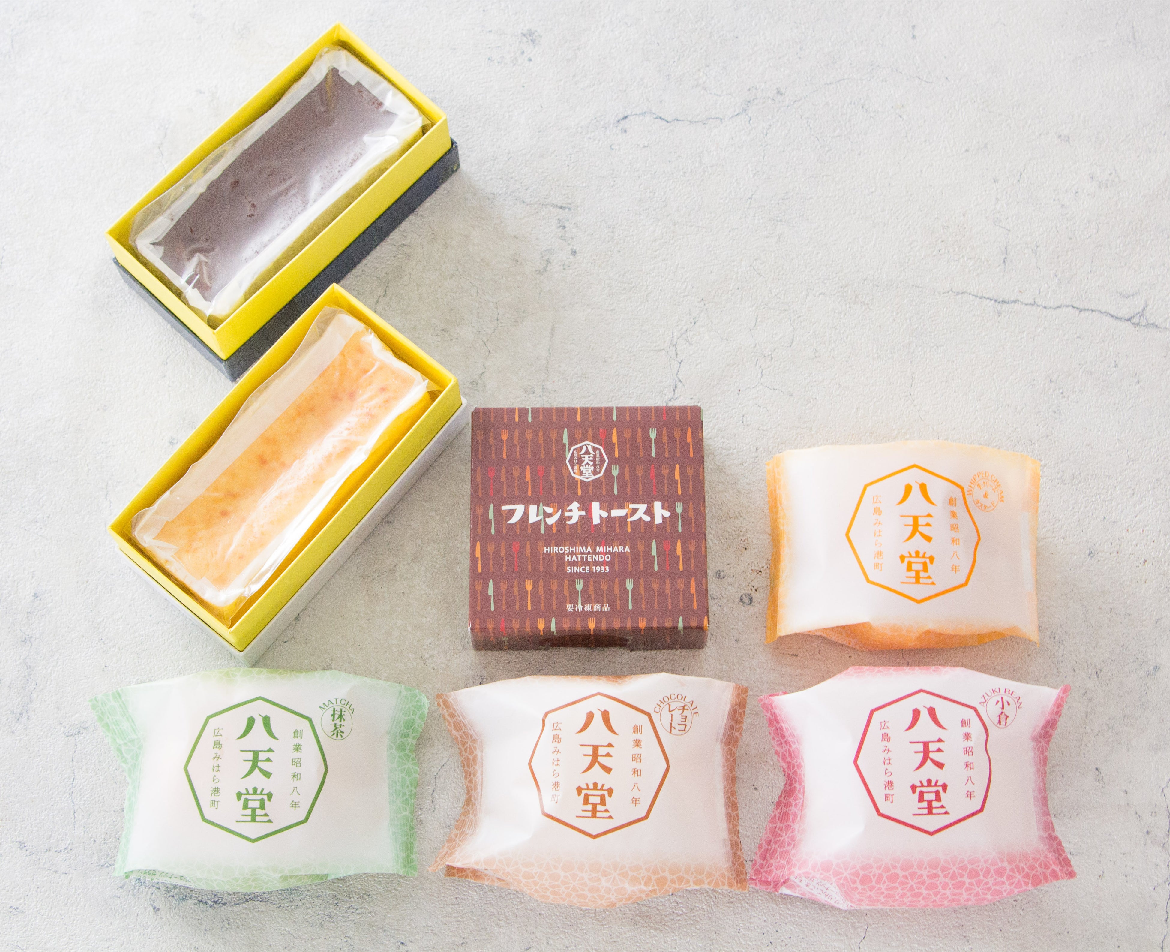 八天堂「フレンチトースト」、「くりーむパン」生クリーム&カスタード、「くりーむパン」抹茶、「くりーむパン」チョコレート、「くりーむパン」小倉