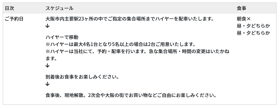 ※ハイヤーは当社にて、予約・配車を行います。急な集合場所・時間の変更はいたしかねます。