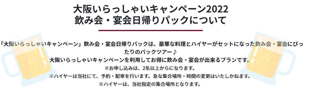 「大阪いらっしゃいキャンペーン2022」飲み会・宴会日帰りパックについて