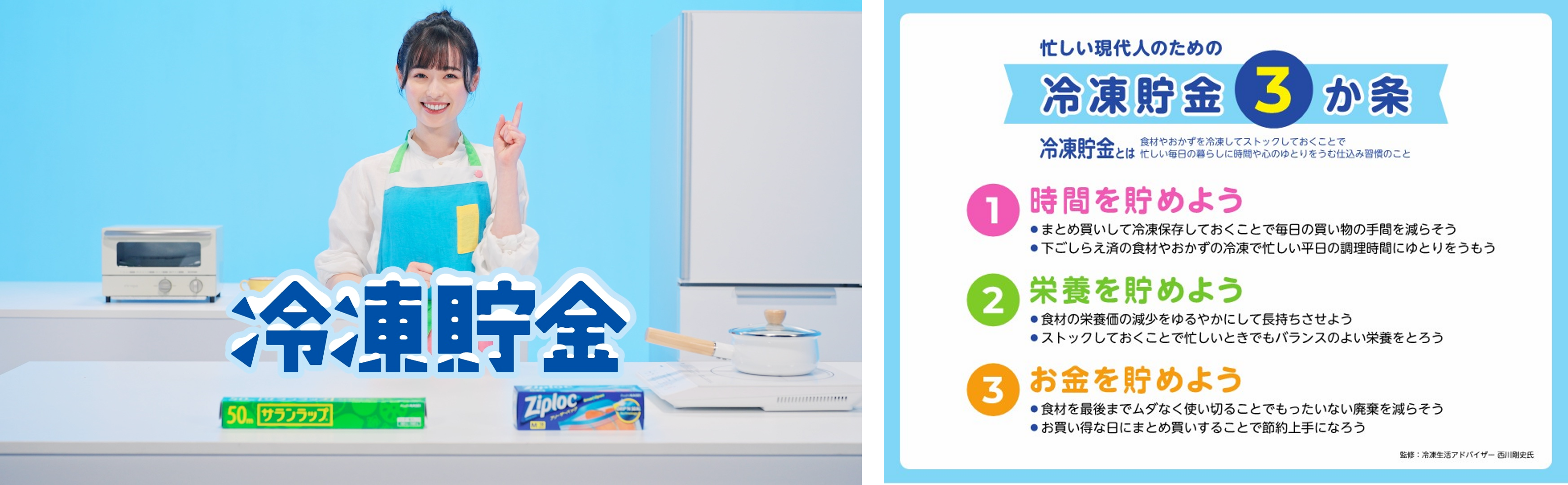 「冷凍貯金」の特設サイトでは、サランラップ®やジップロック®を使った、忙しい毎日の暮らしにゆとりをうむ様々な「冷凍貯金テクニック」を公開。その他、育児・家事・仕事と日々の生活に追われがちな「冷凍貯金」ニーズの高いママ・パパがやってみたい「冷凍貯金ランキング」など、生活に役立つ「冷凍貯金」に関する様々な情報を発信してまいります。