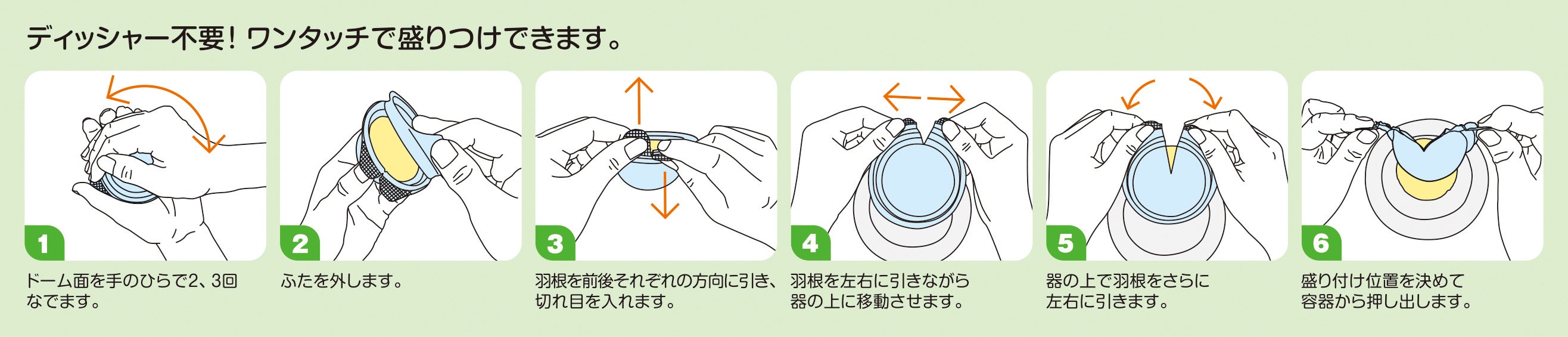 簡単ステップで開封でき、均一でキレイな盛り付けができます。