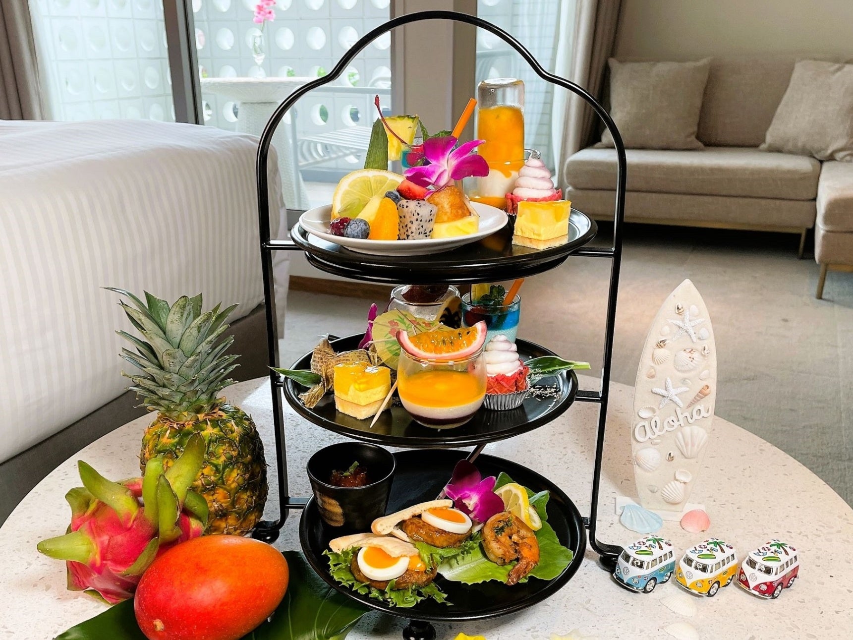 Stay Aloha. リラックスできるインルーム・アフタヌーンティーだからこそ、ハワイのカフェをテーマに。涼しいお部屋でトロピカルな美味しさを楽しんで。