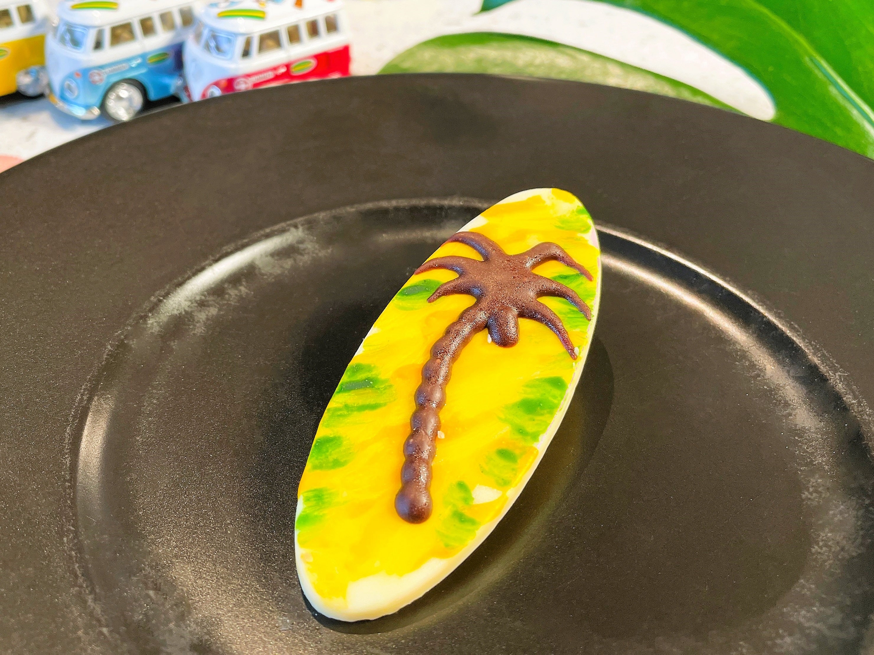 ミルキーなホワイトチョコをサーフボードに見立てました。