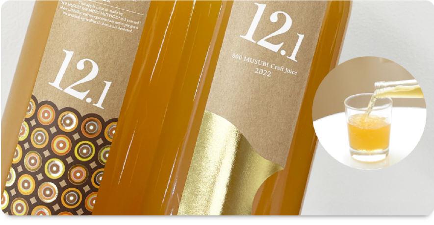 返礼品としてご用意するのは、“八百結び農法®︎3年土壌”で収穫されたりんごを100%丸ごと搾ったクラフトジュースです。