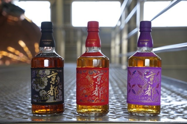 京都ウイスキー西陣織ラベルシリーズは、ピュアモルト紫帯とブレンデッド赤帯、黒帯の2タイプ、3種のラインナップとなっております。