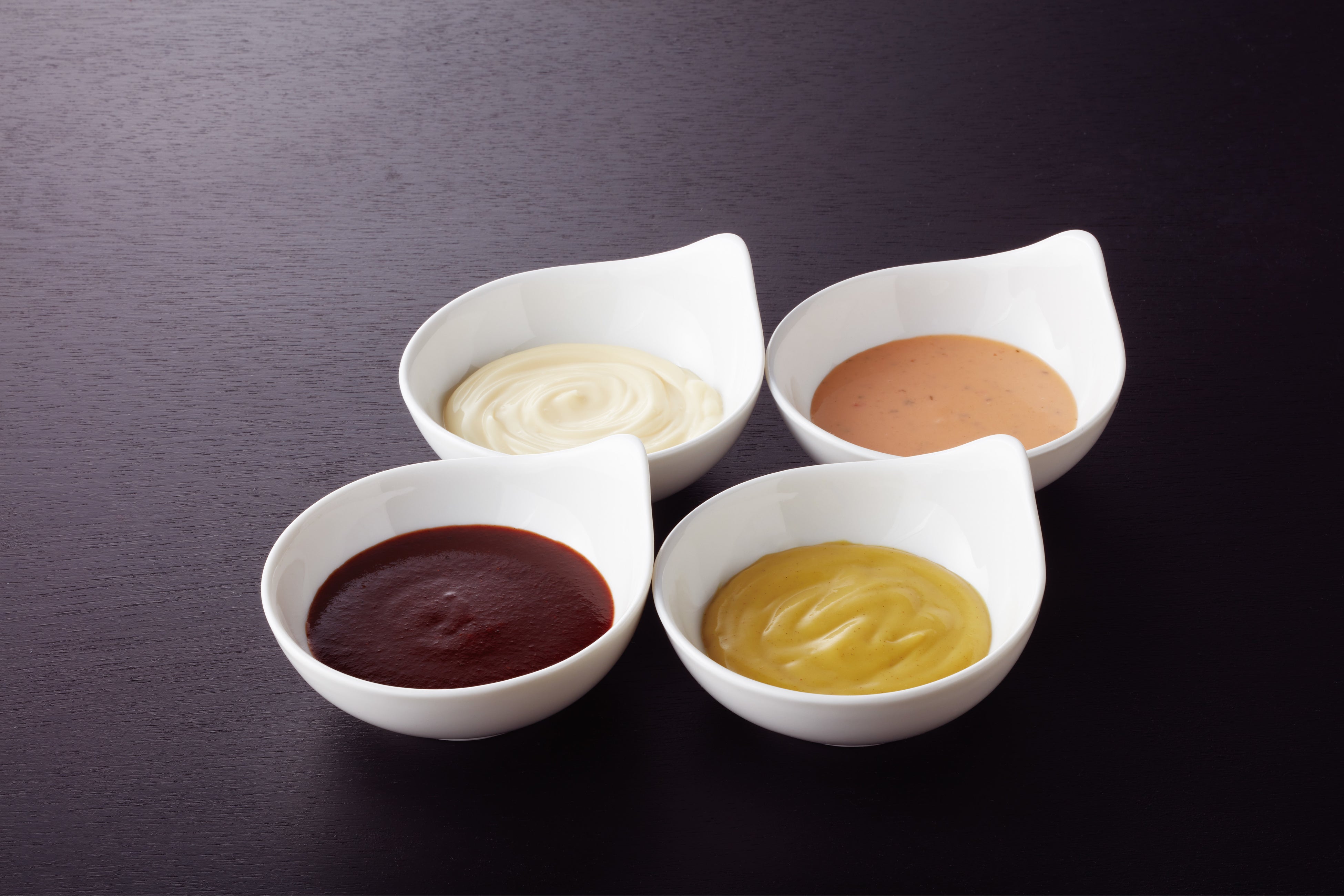 定番のハニーマスタードは前回よりマスタードの風味を増してハンバーガーに合うように調整しました。他にもスパイスの効いたBBQソース、コクのあるマヨネーズ、野菜の味わいを引き出すサウザンドレッシングを使い、豊かな味わいを演出します。