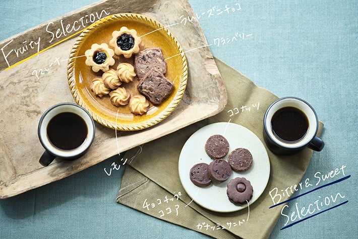 本セットでは、全7種類の焼き菓子を4種と3種に分け、2パターンのマリアージュを楽しめるのが大きな特徴です。エチオピア産のスペシャルティコーヒーに合わせて、風味の特徴である、柑橘やベリーのようなフルーティな印象をより引き立てて楽しむ「Fruity Selection」と、心地よいビター感、甘みのある味わいをより引き立てて楽しむ「Bitter & Sweet Selection」に分けてお楽しみいただけます。