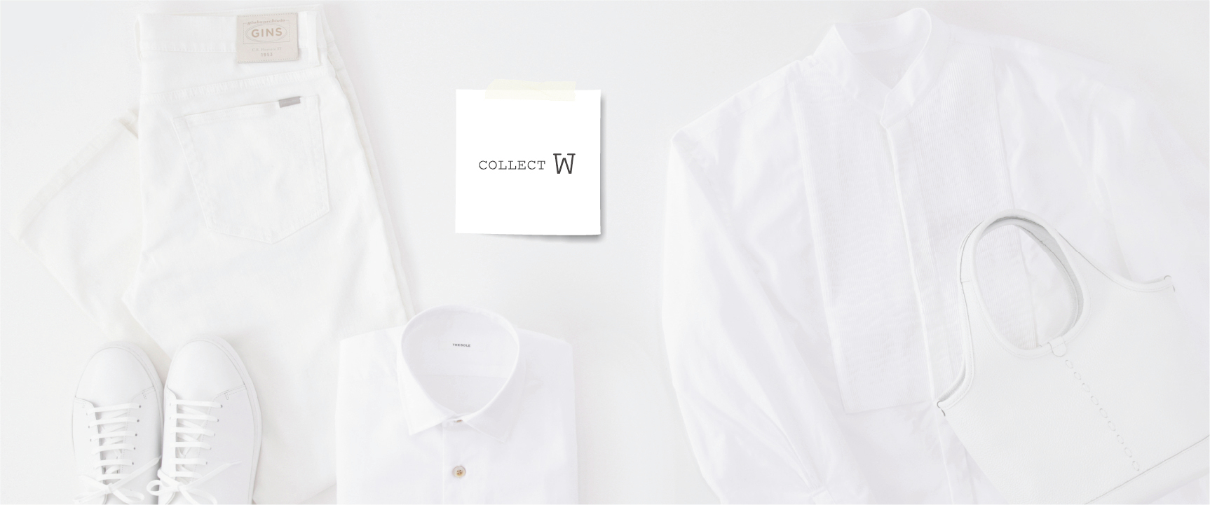 定番色中の定番、「白」のみをセレクトしたECショップ。「COLLECT W」ではシンプルな色だからこそ上質な素材や精巧な創りを選りすぐり、長年受け継がれてきた確かな技術と、次世代へ受け継がれていくセンスの光る逸品をジャンルレス、ジェンダーフルイドに集めました。派手さ華やかさではない雅美なアイテムを1点1点愛でていただければと願っています。