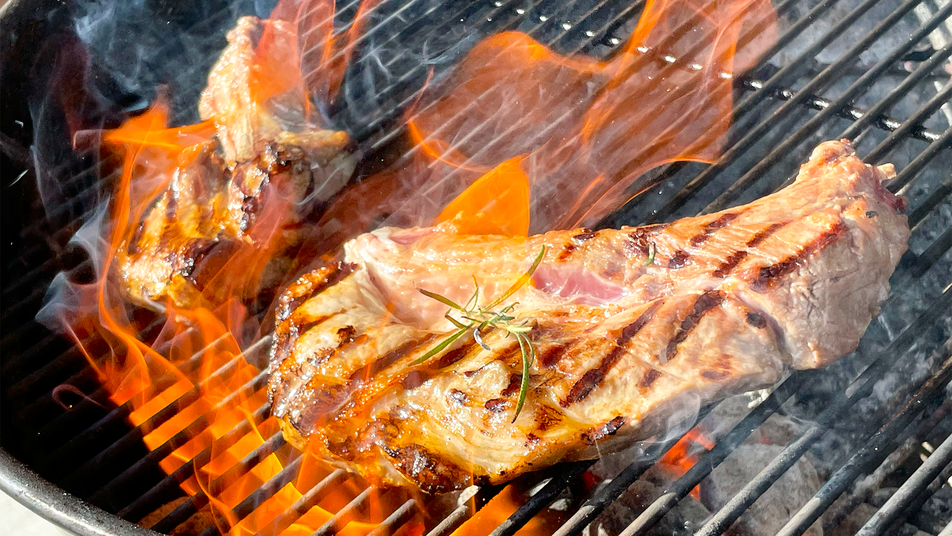 表面をしっかり焼き付けてから遠火でじっくり焼けば、