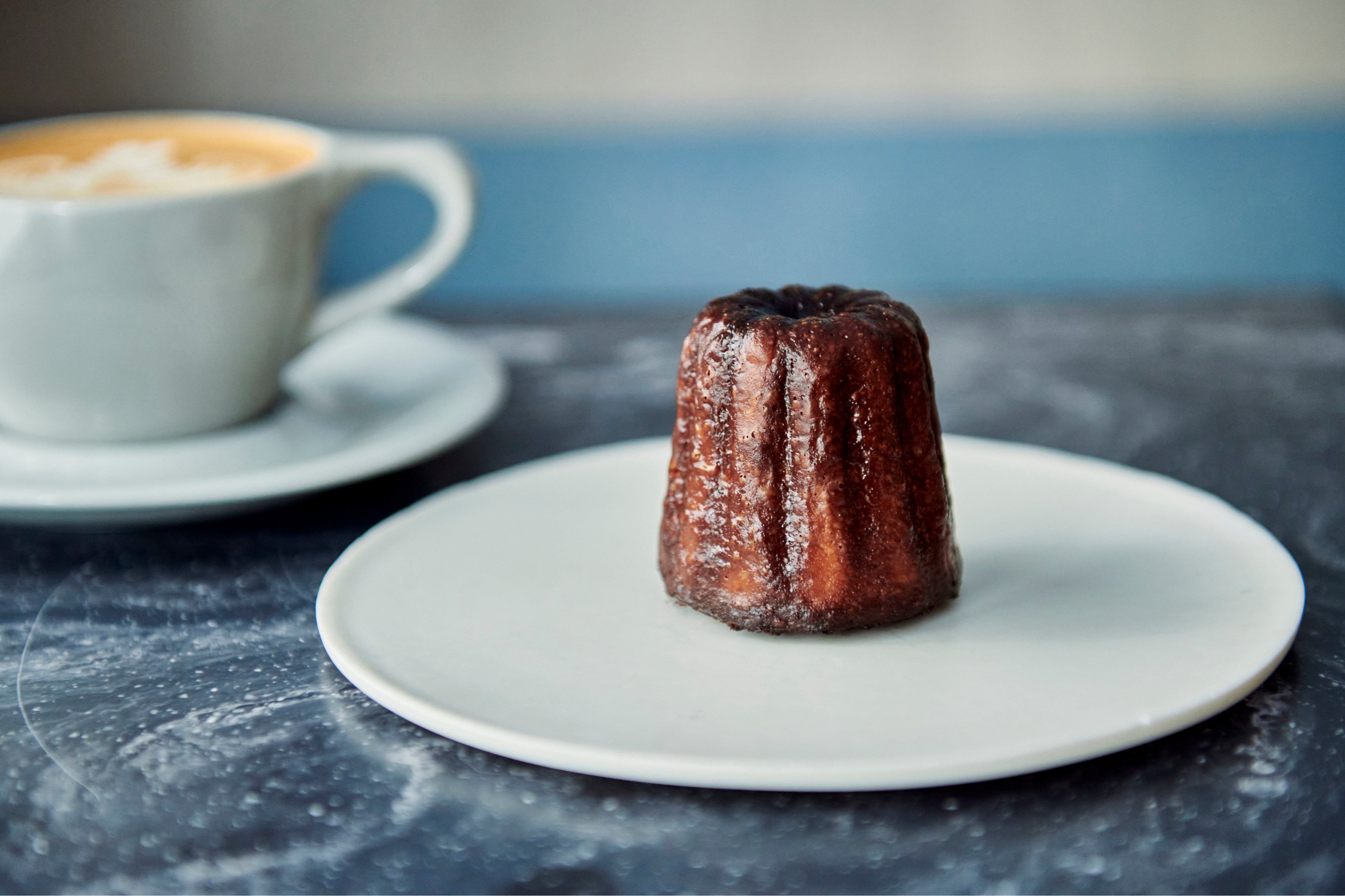 ・姉妹店で焼き上げるオリジナルカヌレ(右)。コーヒーチェリー(コーヒー豆の生産時に捨てられてきた果肉部分)を使用して独特の酸味と甘味を味わえるものになっている。