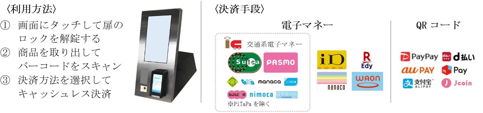 決済手段はキャッシュレス決済のみで、電子マネー、QRコード※3の決済が利用可能です。※4
