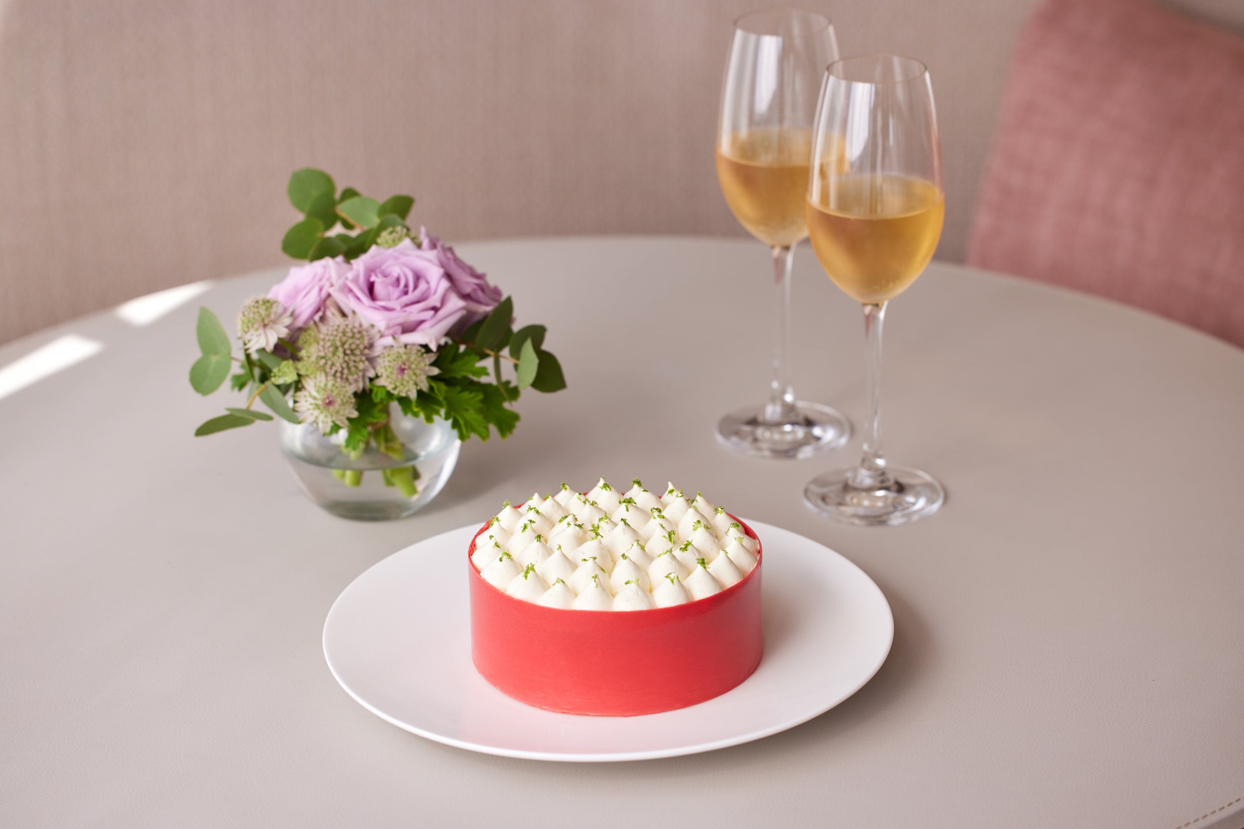 6月限定のアニバーサリーメニューでは、シルクのように滑らかなチキンレバーパルフェや、肉汁のあふれ出す煮込み仔豚コロッケ、ブルギニョンソースで柔らかく蒸し煮した和牛頬肉など、MAISON MARUNOUCHIの代表的な料理をコース仕立てでお召し上がりいただけます。コースの締めくくりには、オリジナルのシャンパンケーキをご愛顧いただいているお客様への心からの感謝の気持ちを込めてご用意します。