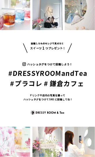 DRESSY ROOM&Teaのドリンクや店内の写真を撮影し、InstagramやTikTokなどのSNSで投稿するだけでスイーツを1つプレゼント。