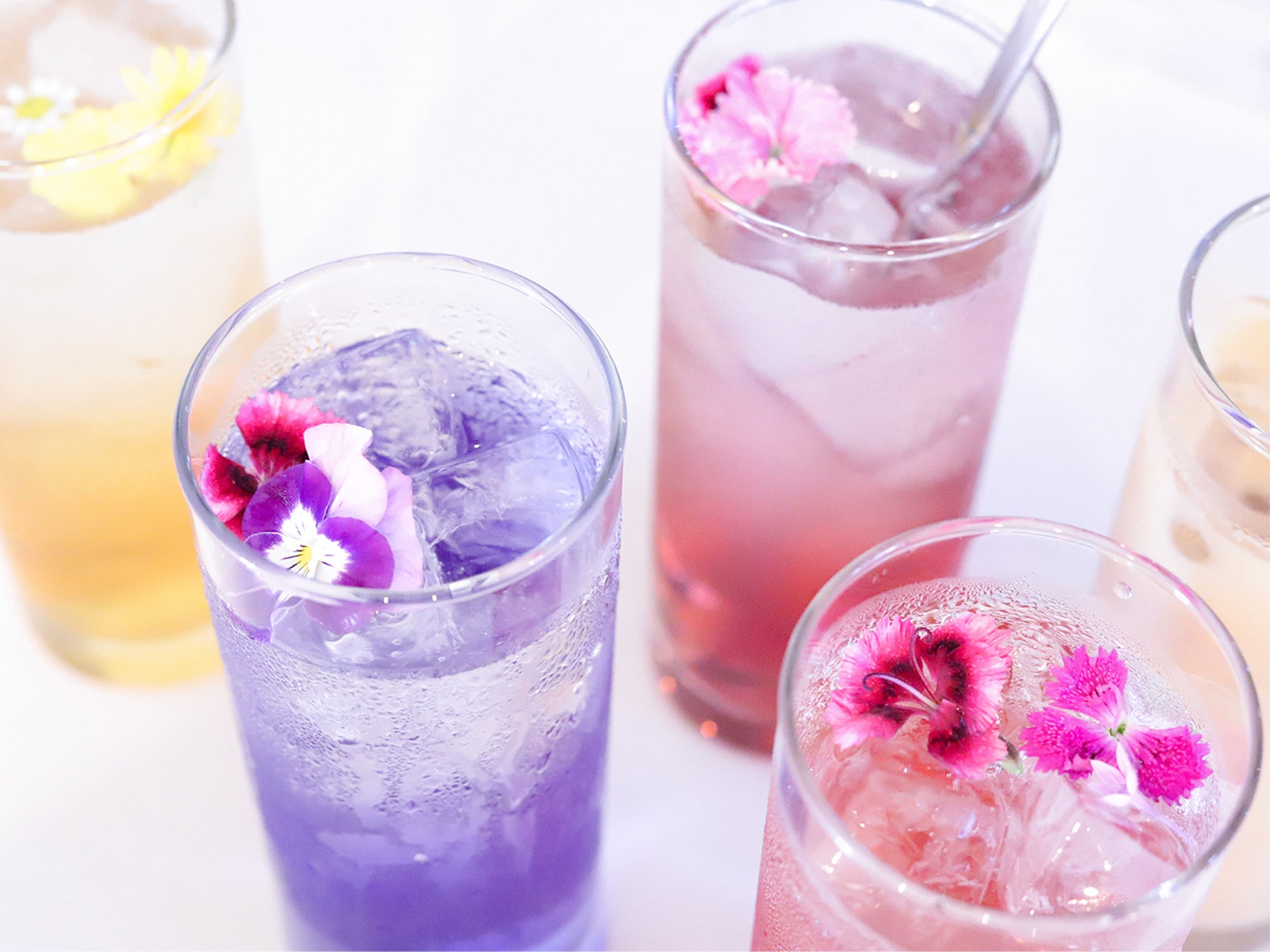 ドレスアップティーを使った日替わりのカクテル。幻想的なドリンクは見た目も鮮やか。エディブルフラワー(食用花)を入れ、見た目も華やかにお楽しみいただけます。女性でも飲みやすいカクテルとなっています。