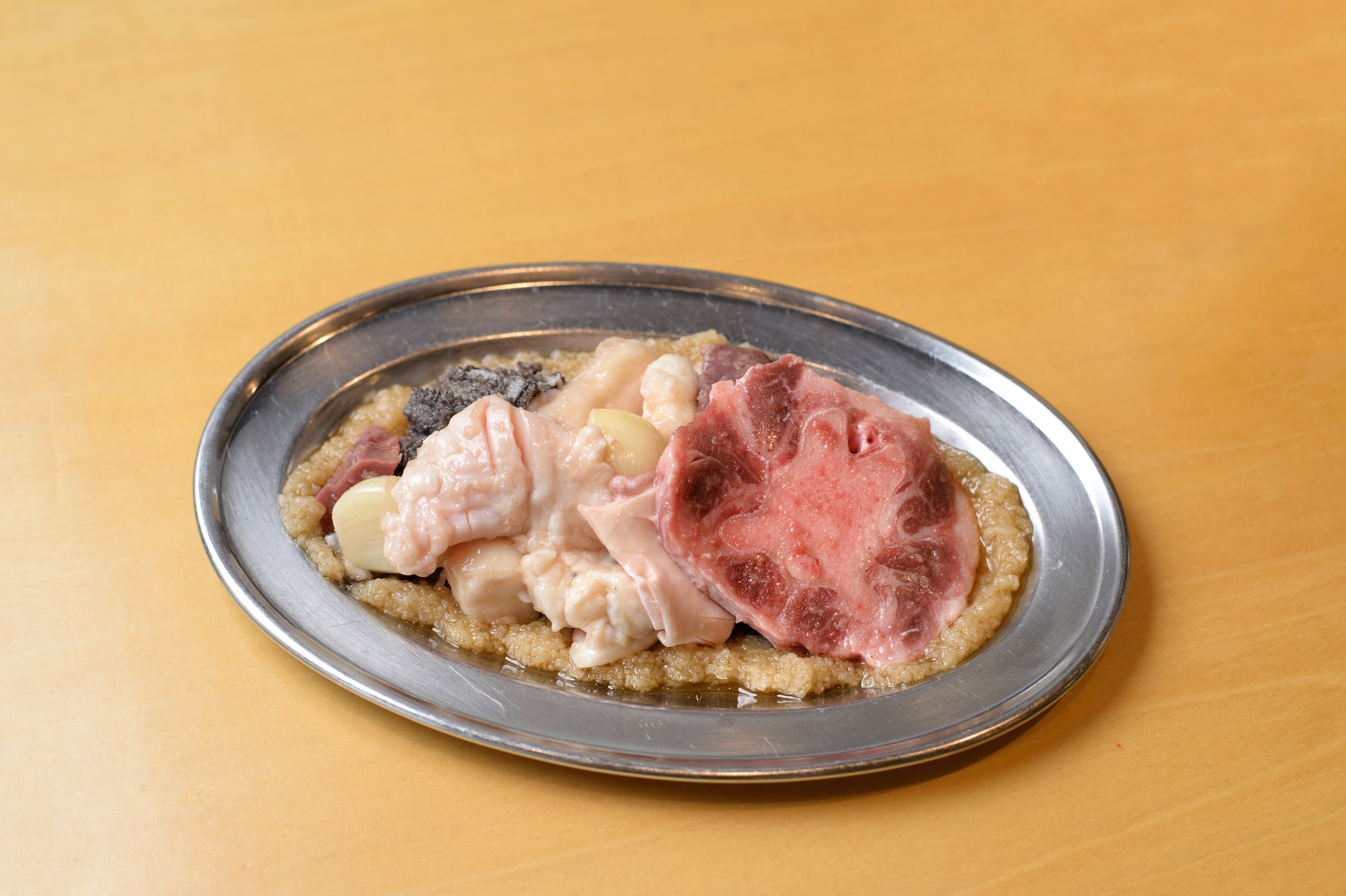 白ミックスは「レバー・ハツ・センマイ・ハチノス・ミノ・赤センマイ・シマチョウ・小腸・マルチョウ・ツラミ・タン・テール」の中から厳選して盛り合わせたホルモンミックス。赤(タレ)・白(塩だれ)の2種類の味付けをお楽しみいただけます。