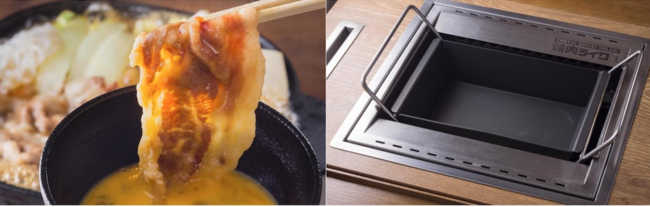 醤油、砂糖とみりんをごはんに合う黄金比で合わせた割下に牛骨からとったオリジナルのだしを加えることにより、牛肉と野菜の旨味を最大限に引き出します。