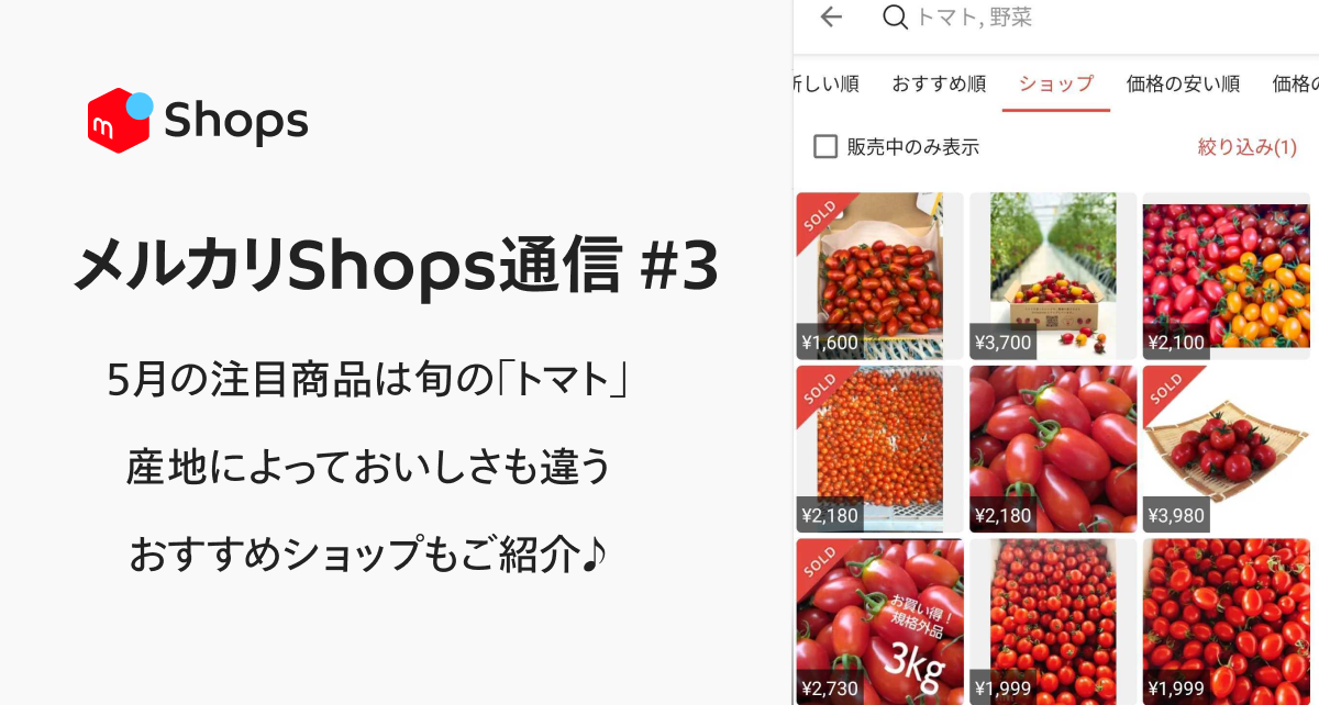 「メルカリShops」のトレンドや注目商品、おすすめショップ、キャンペーンなどをご紹介する「メルカリShops通信」。第3回目となる今回は、これから旬を迎える「トマト」をご紹介します。