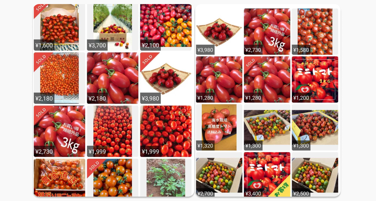 「メルカリShops」にはたくさんのトマト農家さんが出店しています。
