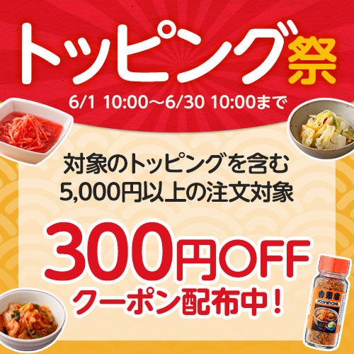 なお、吉野家公式通販ショップ( https://e-shop.yoshinoya.com/ )では店舗のキャンペーンと連動した取り組みとして、6月1日(水)から『トッピング祭』を実施します。紅生姜、お新香、キムチ、唐辛子といった店舗でも大人気のトッピング商品を含めて5,000円(税込)以上ご注文いただくと300円を割引するクーポンを期間限定で配布します。また、6月1日(水)からは「冷凍牛丼の具」とトッピングのセットアイテムも販売を開始します。この機会に自分好みのトッピングを見つけて、おうちでの食事もお楽しみください。