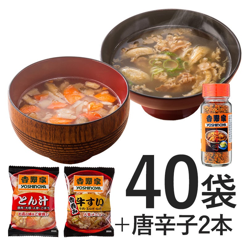 ・ 豚汁牛すい唐辛子セット(フリーズドライ豚汁×20、フリーズドライ牛すい×20、唐辛子×2) 8,100円(税込)