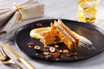 ヘーゼルナッツとアーモンドの香ばしいプラリネクリームをサンドしたオリジナルミルフィユです。