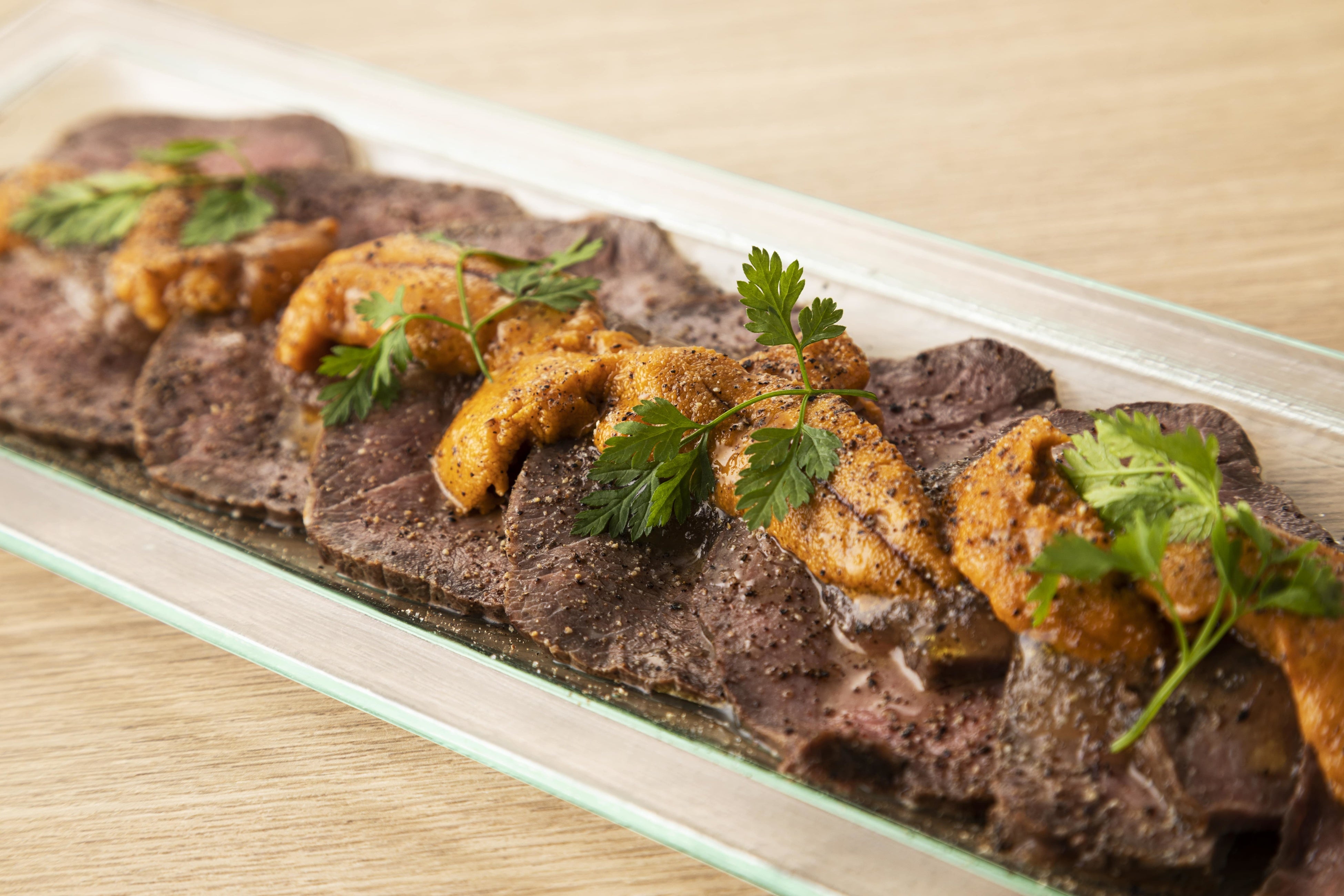 千葉県産上総和牛のローストビーフ生うに乗せ / 1,320円(税込)