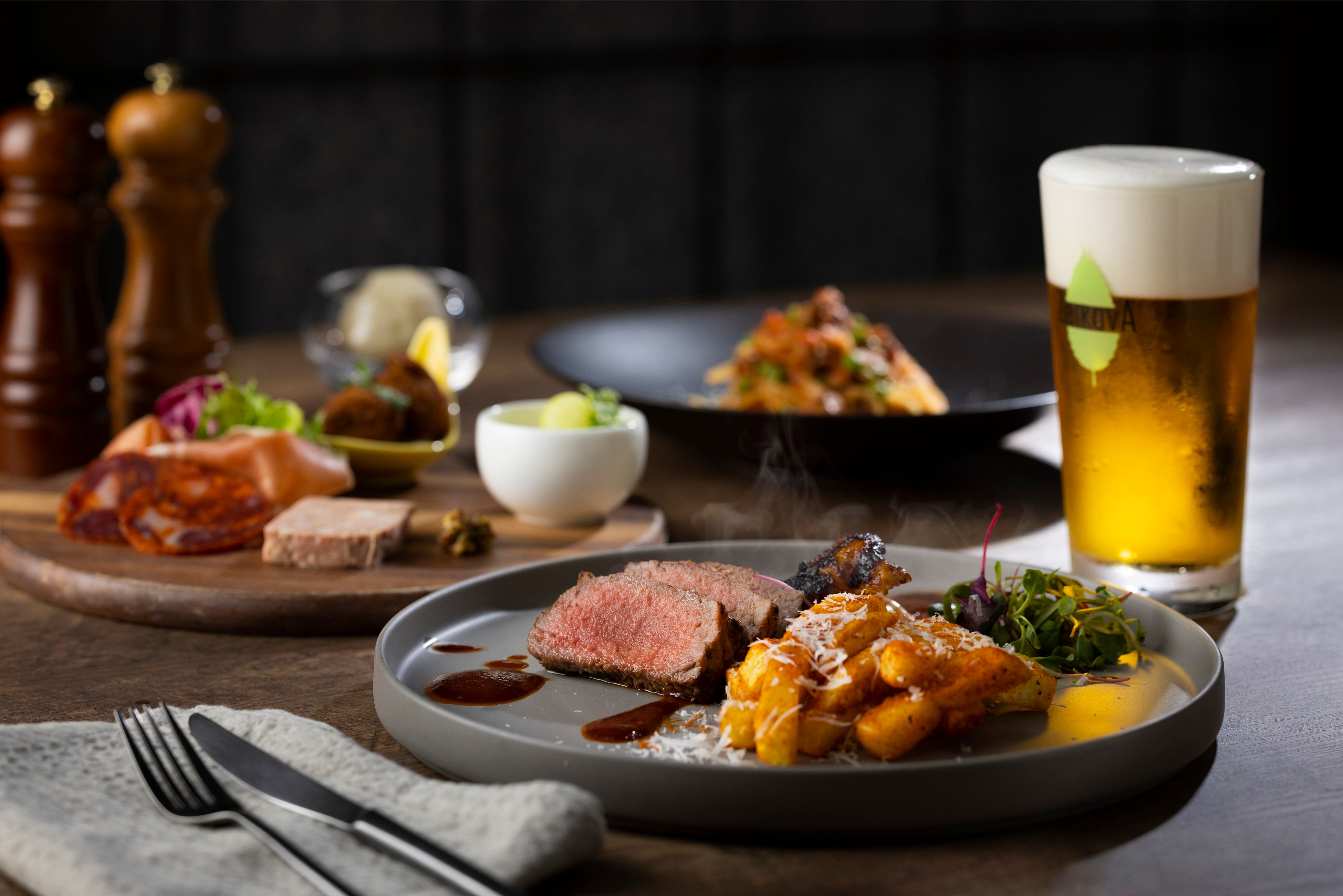 なかでも醤油麹でマリネした牛サーロインは、やわらかな食感かつ、発酵のちからで免疫力アップも期待できるシェフ自慢の一品です。